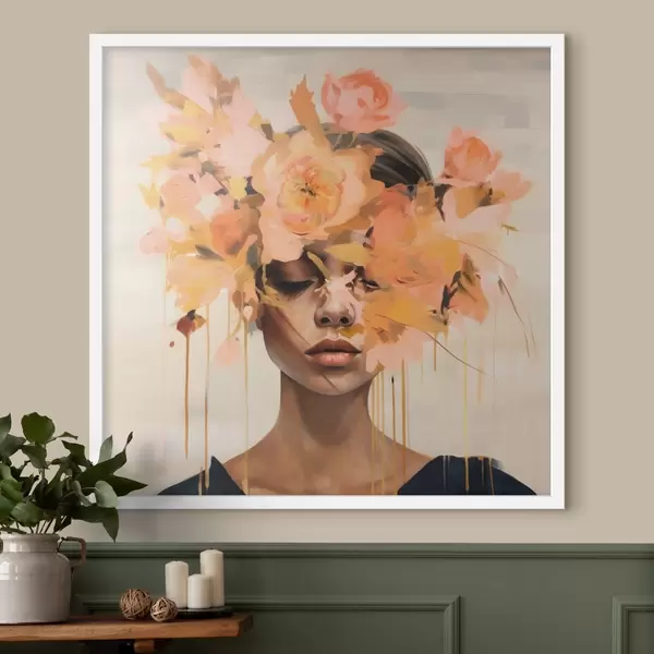 Plakatas Mergaitė su dažais ant veido ir gėlėmis ant galvos f43382