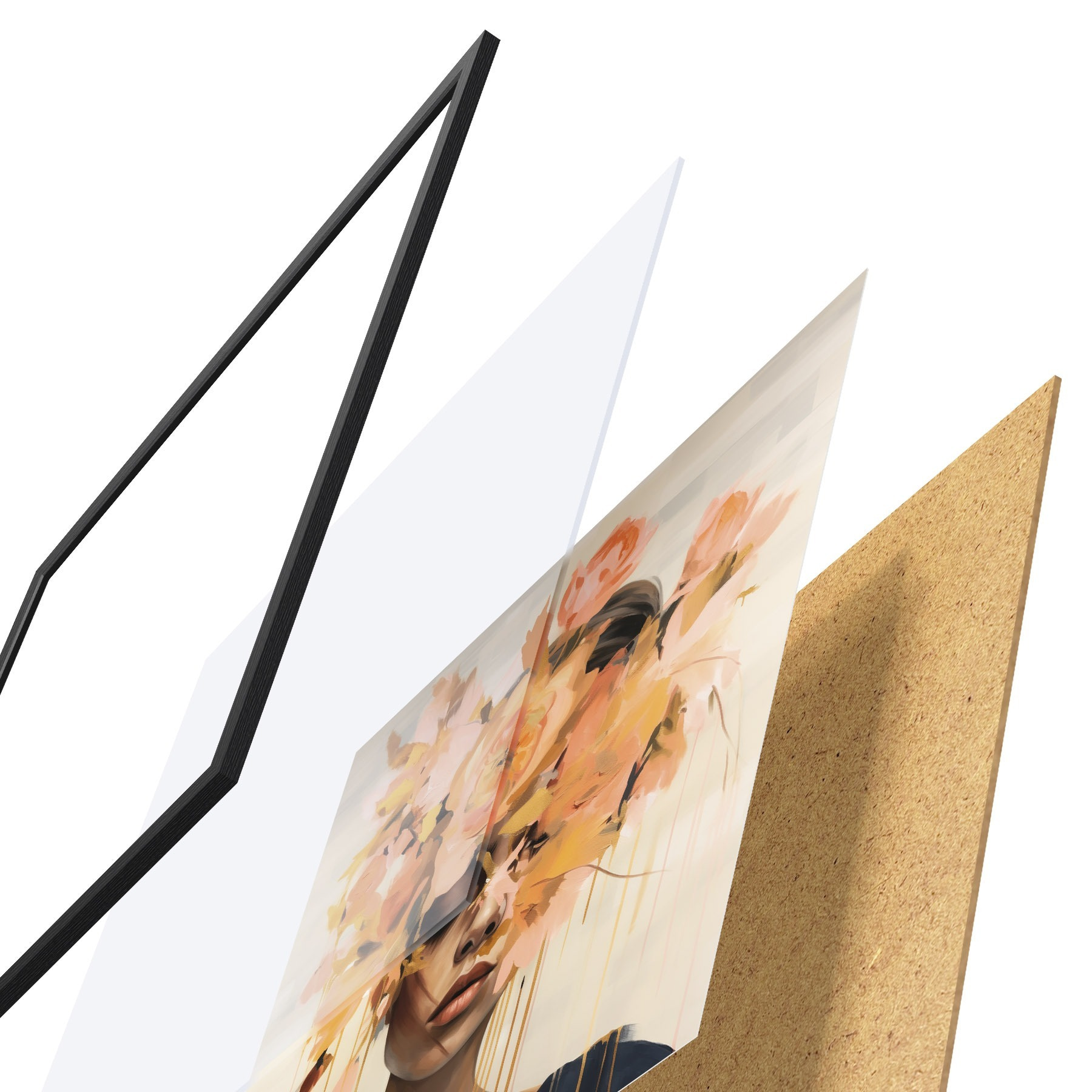 Plakatą sudaro rėmas, pleksiklas, atspausdintas vaizdas ir medžio drožlių plokštės pagrindas. Plakatą galima iš karto pakabinti ant sienos dėl kitoje pusėje esančių laikiklių.