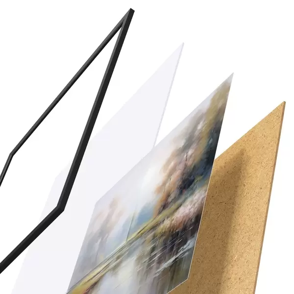 Plakatą sudaro rėmas, pleksiklas, atspausdintas vaizdas ir medžio drožlių plokštės pagrindas. Plakatą galima iš karto pakabinti ant sienos dėl kitoje pusėje esančių laikiklių.