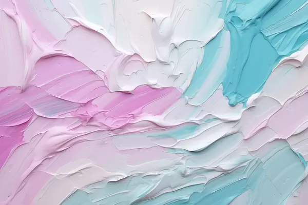 Plakatas Abstrakti aliejinės tapybos imitacija su storais rausvų, baltų ir turkio spalvos dažų potėpiais, sukuriančiais tekstūros efektą Ne f43393