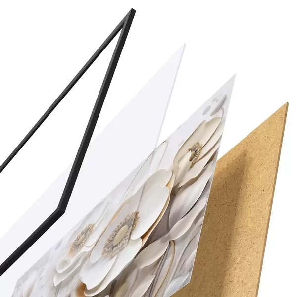 Plakatą sudaro rėmas, pleksiklas, atspausdintas vaizdas ir medžio drožlių plokštės pagrindas. Plakatą galima iš karto pakabinti ant sienos dėl kitoje pusėje esančių laikiklių.