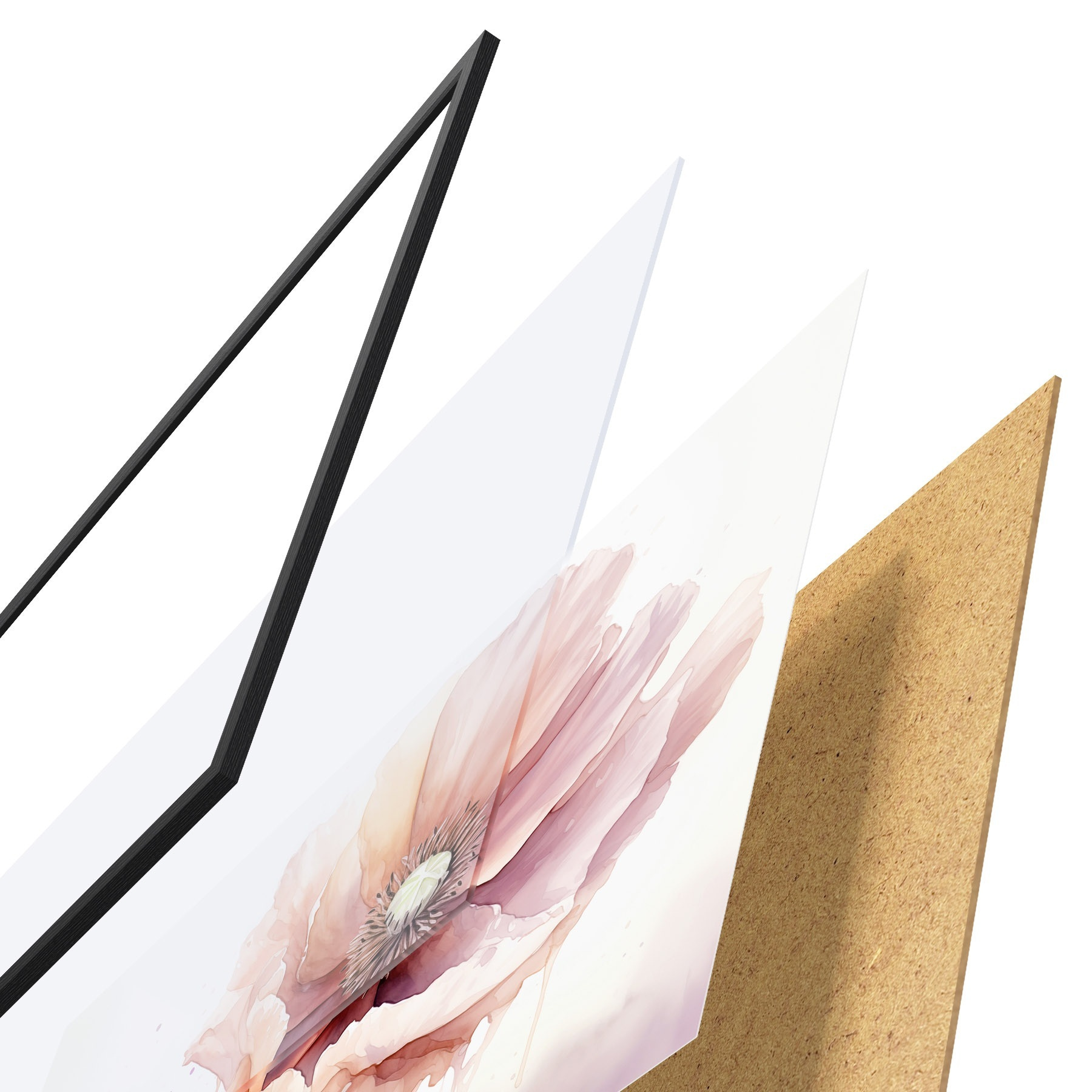 Plakatą sudaro rėmas, pleksiklas, atspausdintas vaizdas ir medžio drožlių plokštės pagrindas. Plakatą galima iš karto pakabinti ant sienos dėl kitoje pusėje esančių laikiklių.