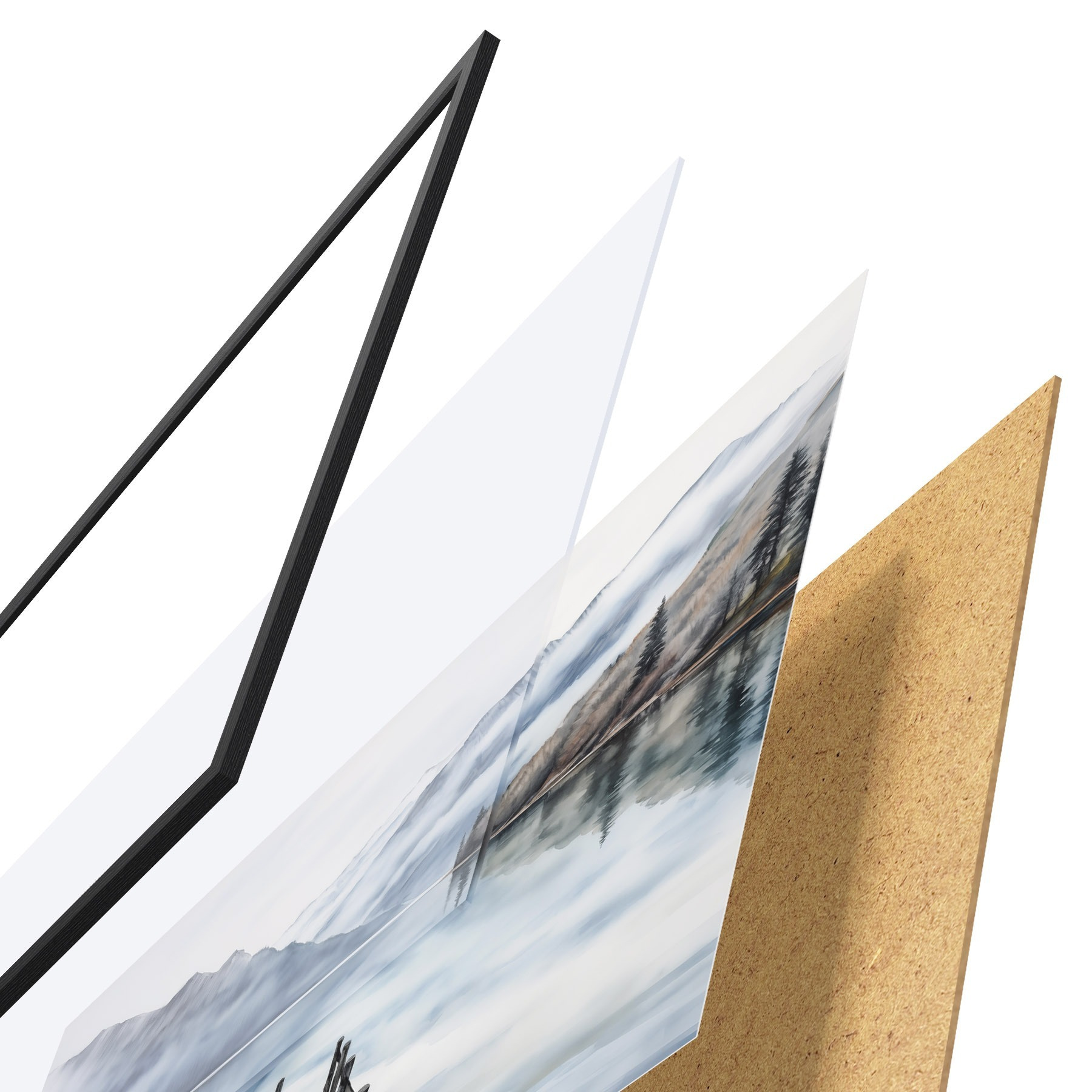 Plakatą sudaro rėmas, pleksiklas, atspausdintas vaizdas ir medžio drožlių plokštės pagrindas. Plakatą galima iš karto pakabinti ant sienos dėl kitoje pusėje esančių laikiklių.