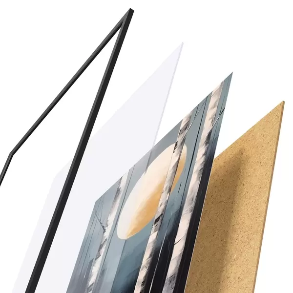 Plakatą sudaro rėmas, pleksiklas, atspausdintas vaizdas ir medžio drožlių plokštės pagrindas. Plakatą galima iš karto pakabinti ant sienos dėl kitoje pusėje esančių laikiklių.