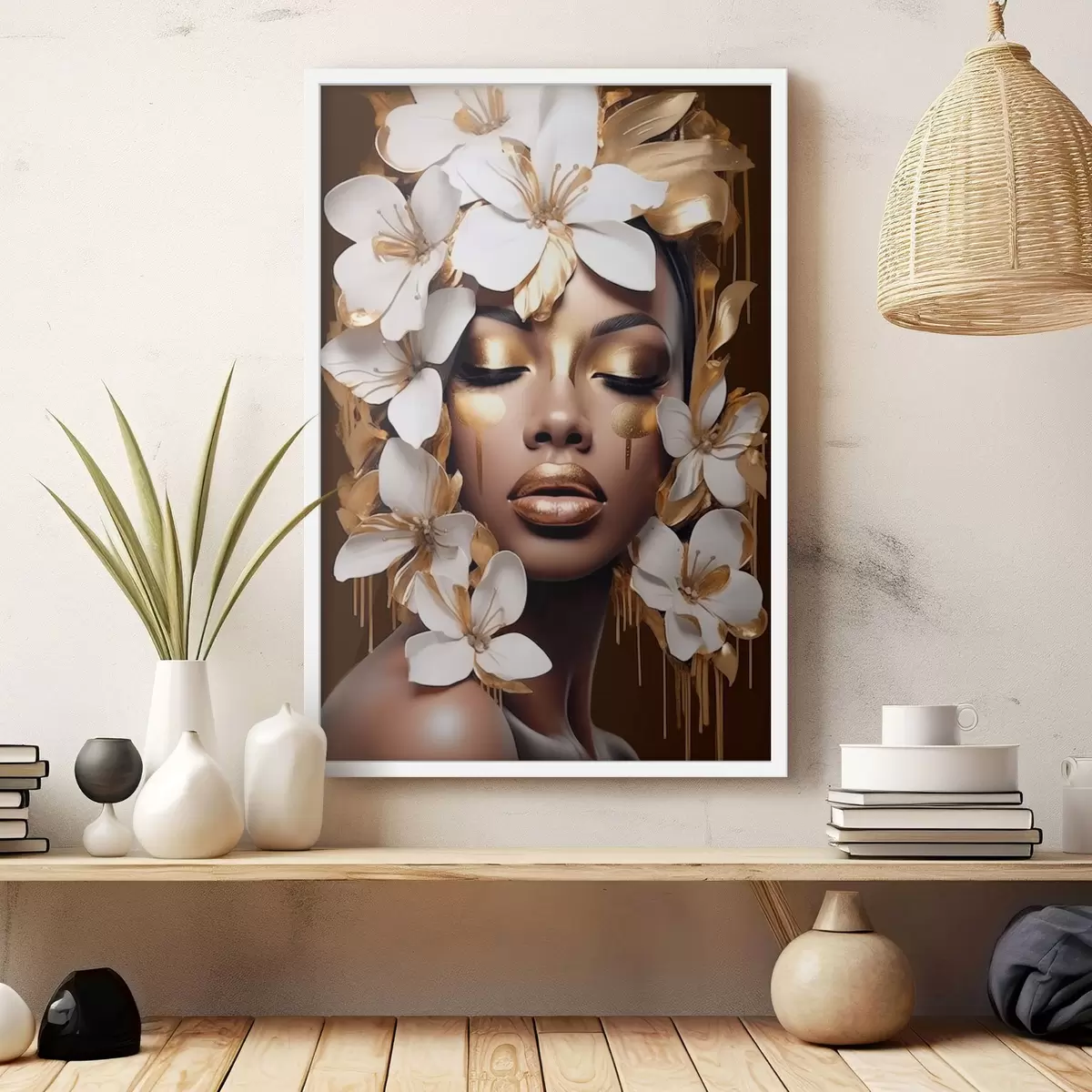 Plakatas Moters portretas su gėlių elementais Ne f43417
