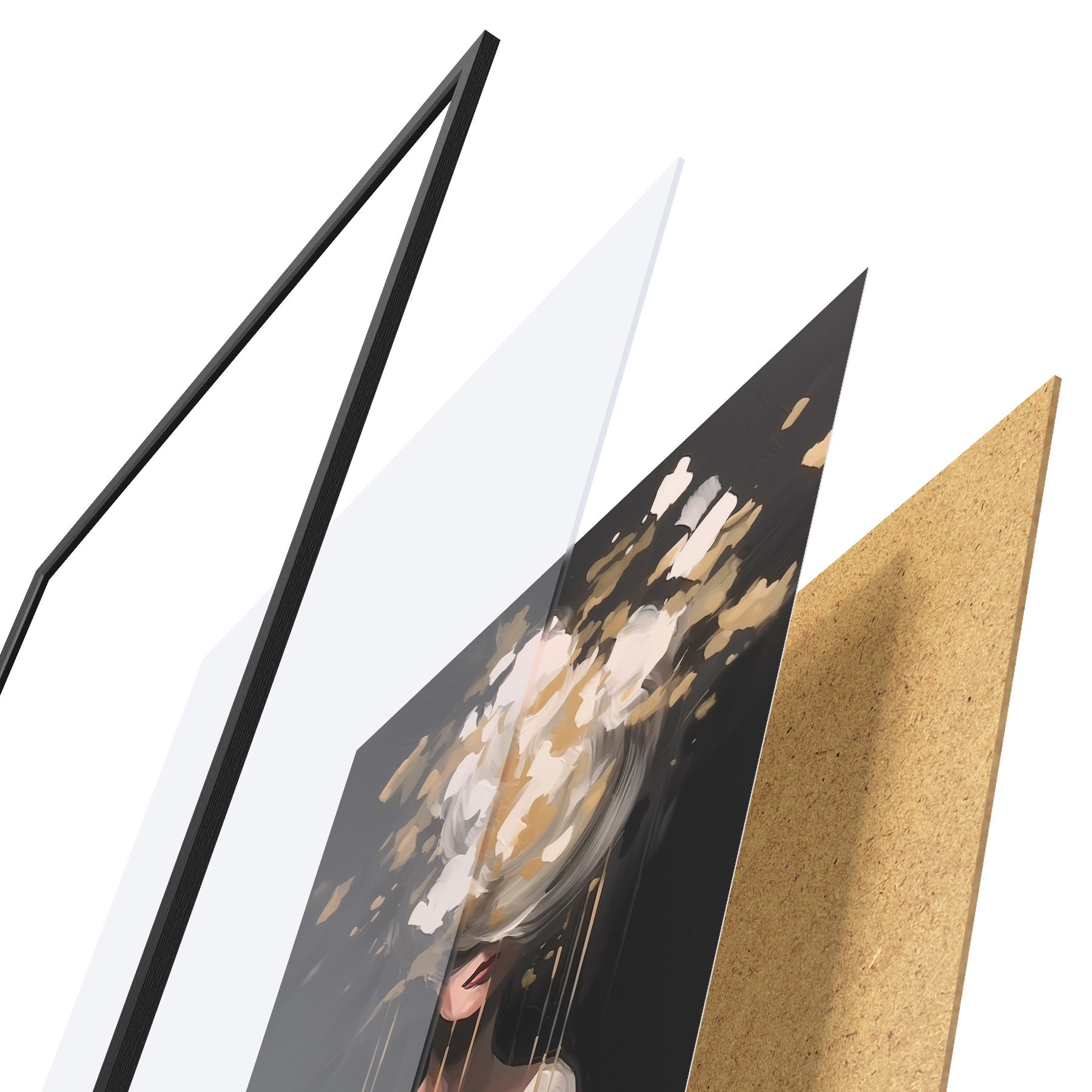Plakatą sudaro rėmas, pleksiklas, atspausdintas vaizdas ir medžio drožlių plokštės pagrindas. Plakatą galima iš karto pakabinti ant sienos dėl kitoje pusėje esančių laikiklių.