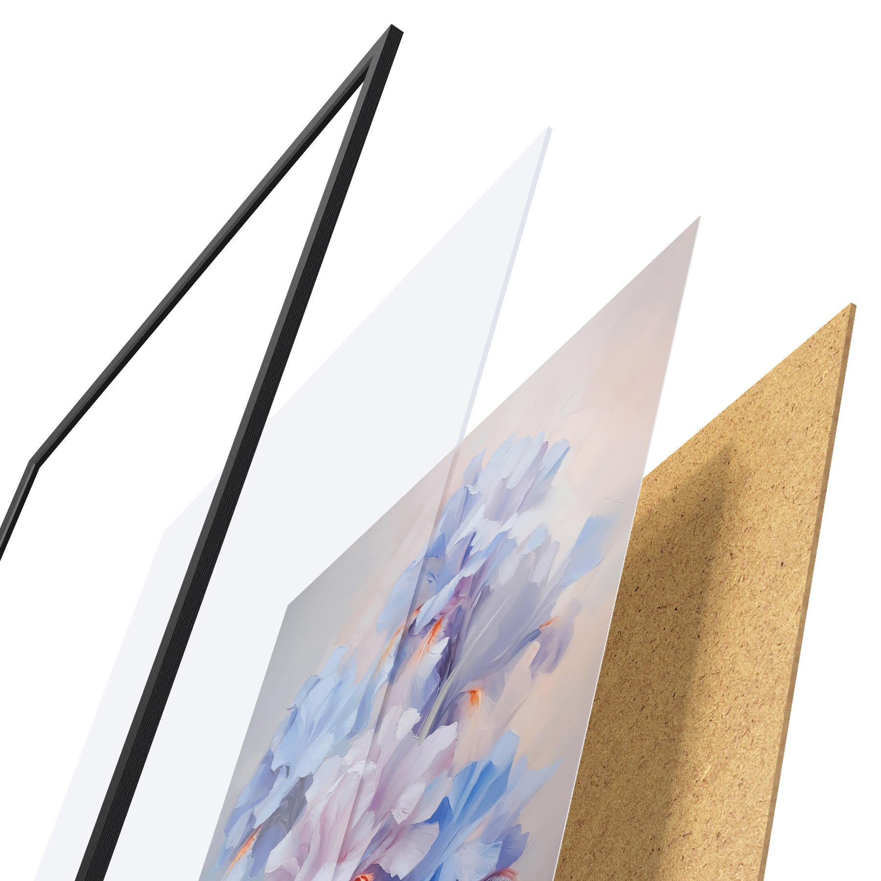 Plakatą sudaro rėmas, pleksiklas, atspausdintas vaizdas ir medžio drožlių plokštės pagrindas. Plakatą galima iš karto pakabinti ant sienos dėl kitoje pusėje esančių laikiklių.