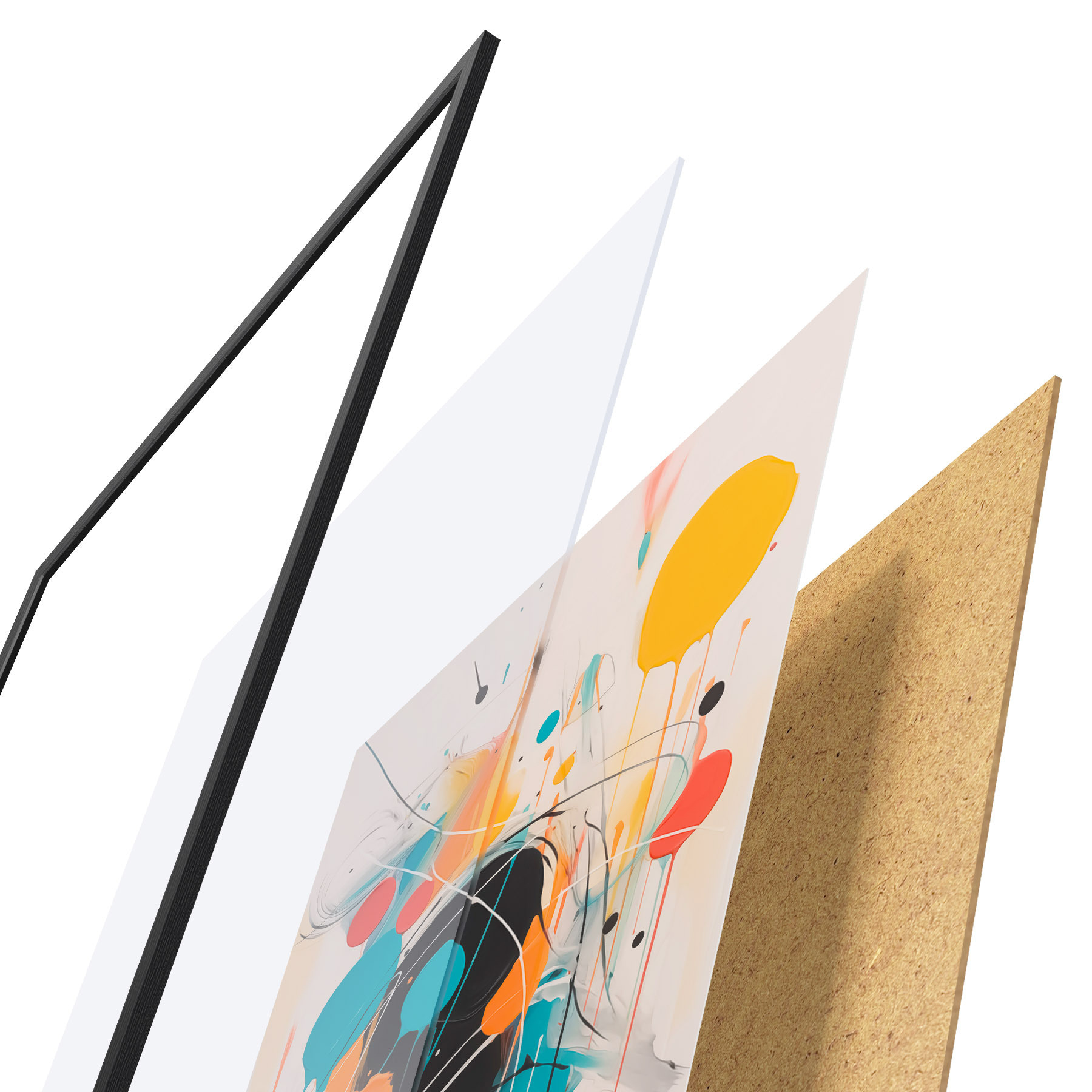 Plakatą sudaro rėmas, pleksiklas, atspausdintas vaizdas ir medžio drožlių plokštės pagrindas. Plakatą galima iš karto pakabinti ant sienos dėl kitoje pusėje esančių laikiklių.