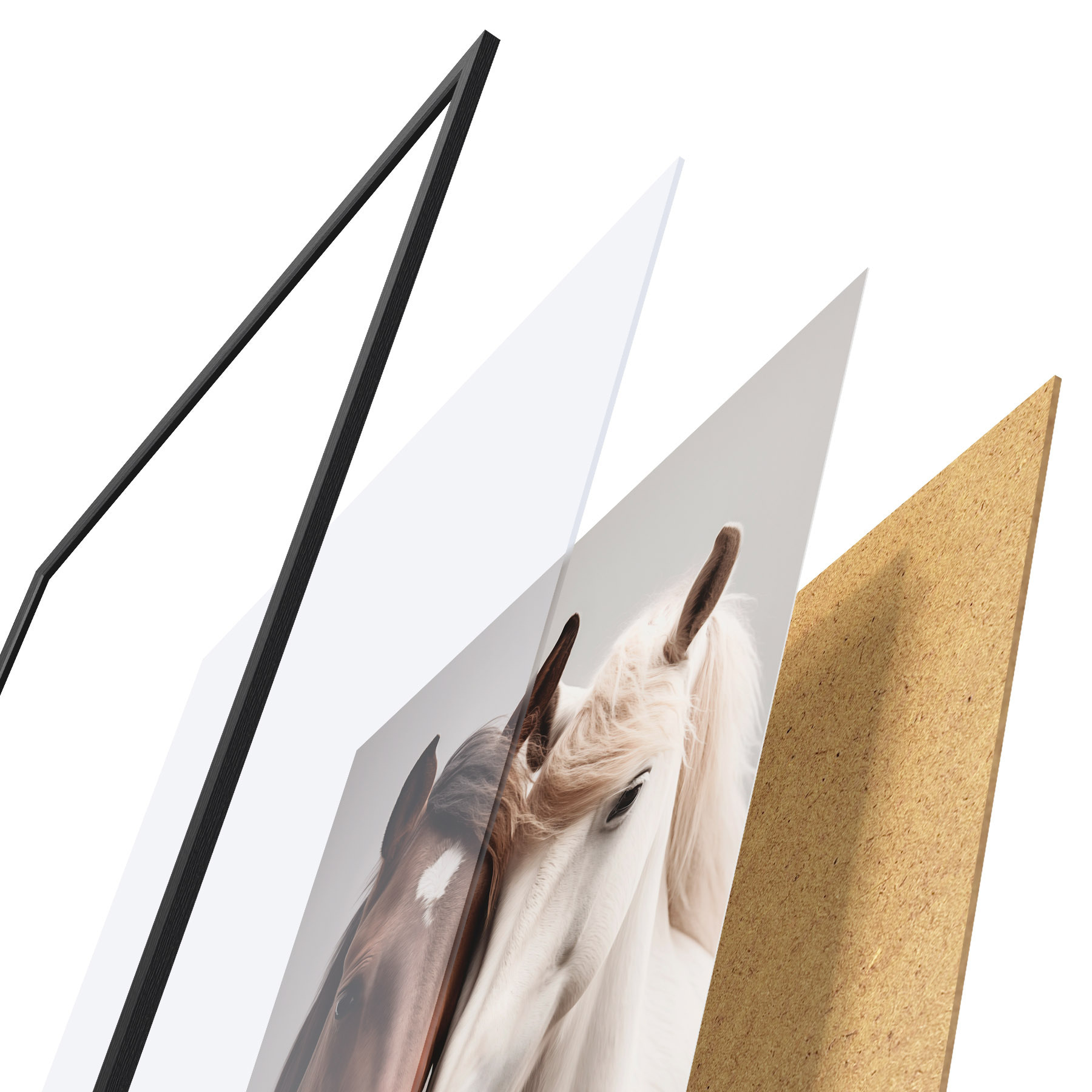 Plakatą sudaro rėmas, pleksiklas, atspausdintas vaizdas ir medžio drožlių plokštės pagrindas. Plakatą galima iš karto pakabinti ant sienos dėl kitoje pusėje esančių laikiklių.