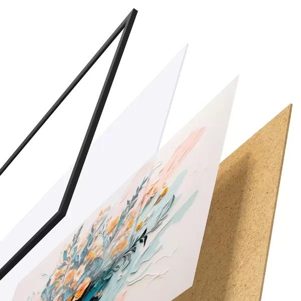 Plakatą sudaro rėmas, pleksiklas, atspausdintas vaizdas ir medžio drožlių plokštės pagrindas. Plakatą galima iš karto pakabinti ant sienos dėl kitoje pusėje esančių laikiklių.
