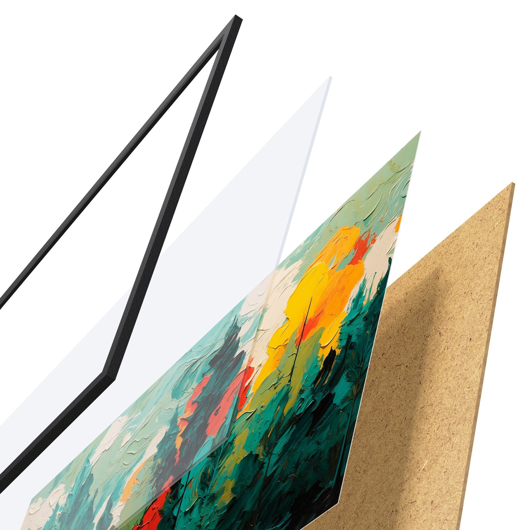 Plakatą sudaro rėmas, pleksiklas, atspausdintas vaizdas ir medžio drožlių plokštės pagrindas. Plakatą galima iš karto pakabinti ant sienos dėl kitoje pusėje esančių laikiklių.