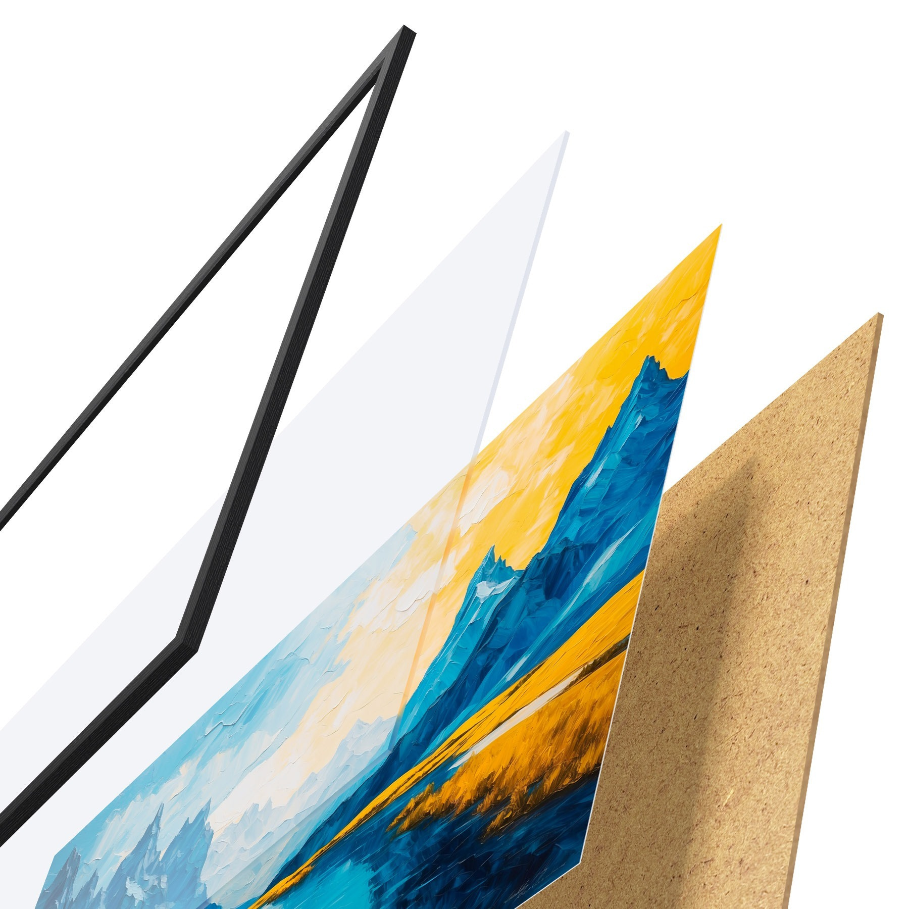 Plakatą sudaro rėmas, pleksiklas, atspausdintas vaizdas ir medžio drožlių plokštės pagrindas. Plakatą galima iš karto pakabinti ant sienos dėl kitoje pusėje esančių laikiklių.
