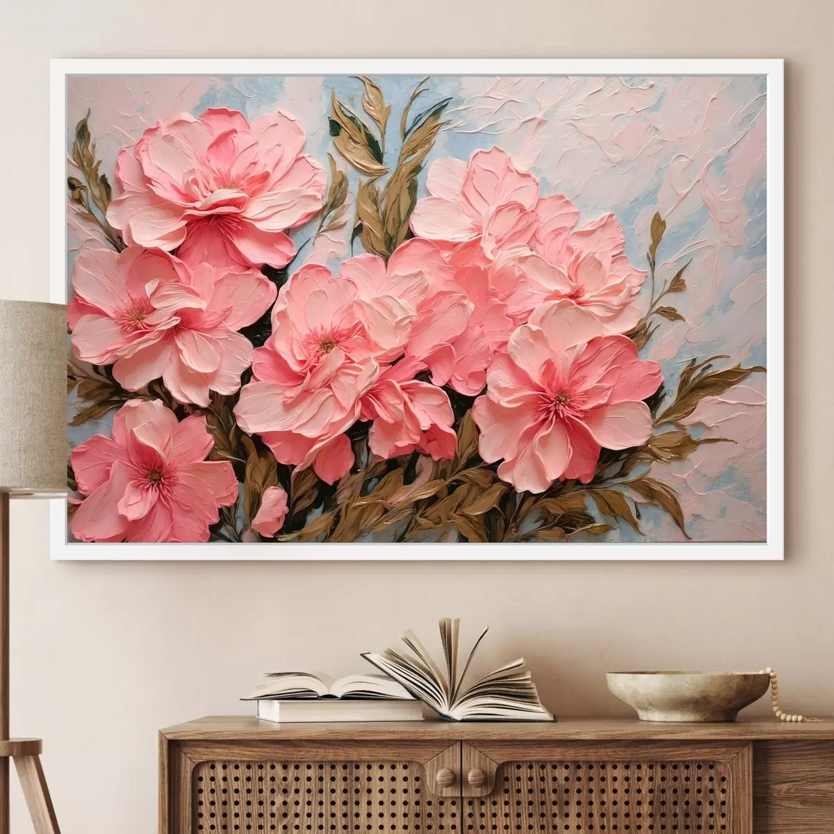 Plakatas Rožinės gėlės ir lapai aliejinės tapybos stiliumi f43453