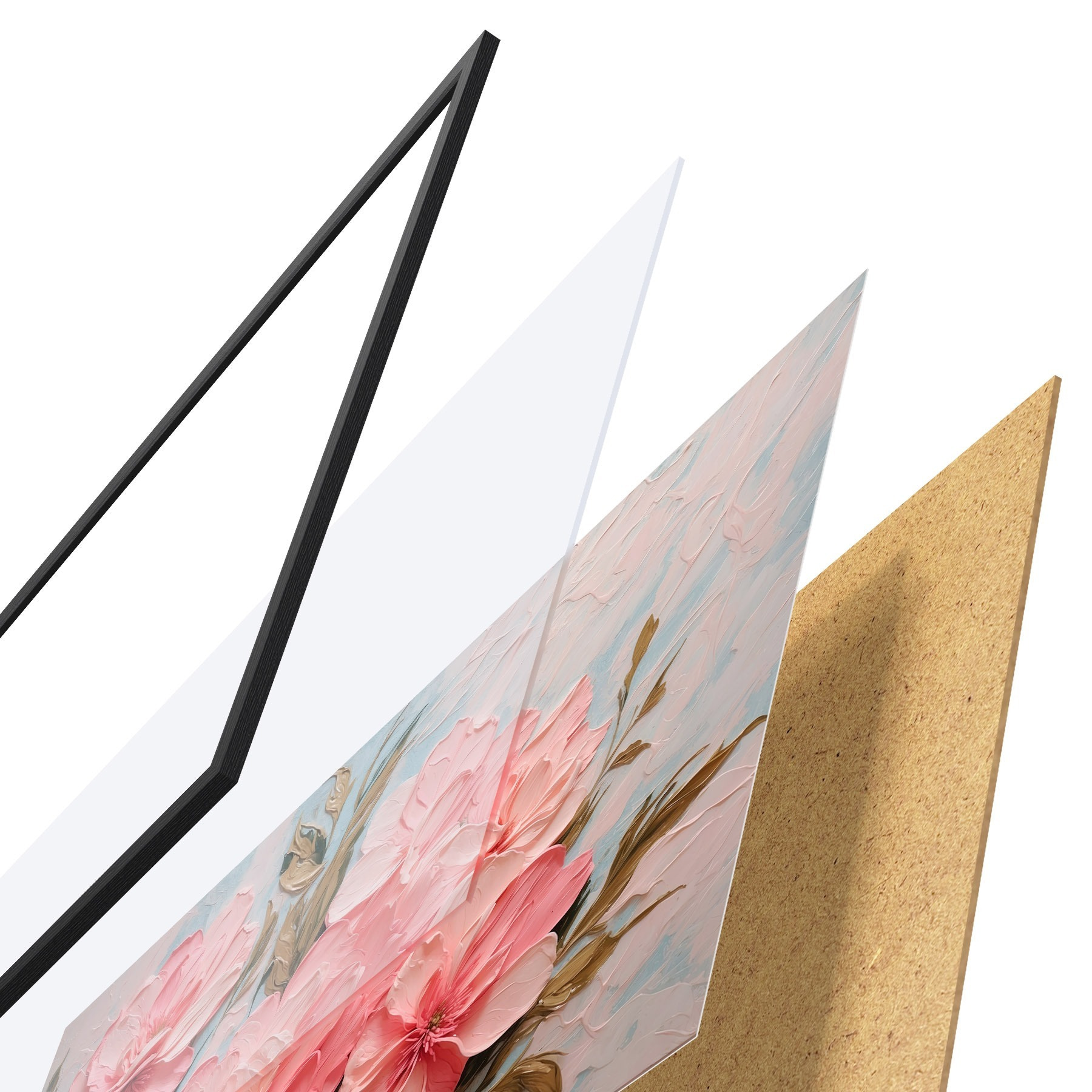 Plakatas Rožinės gėlės ir lapai aliejinės tapybos stiliumi Ne f43453