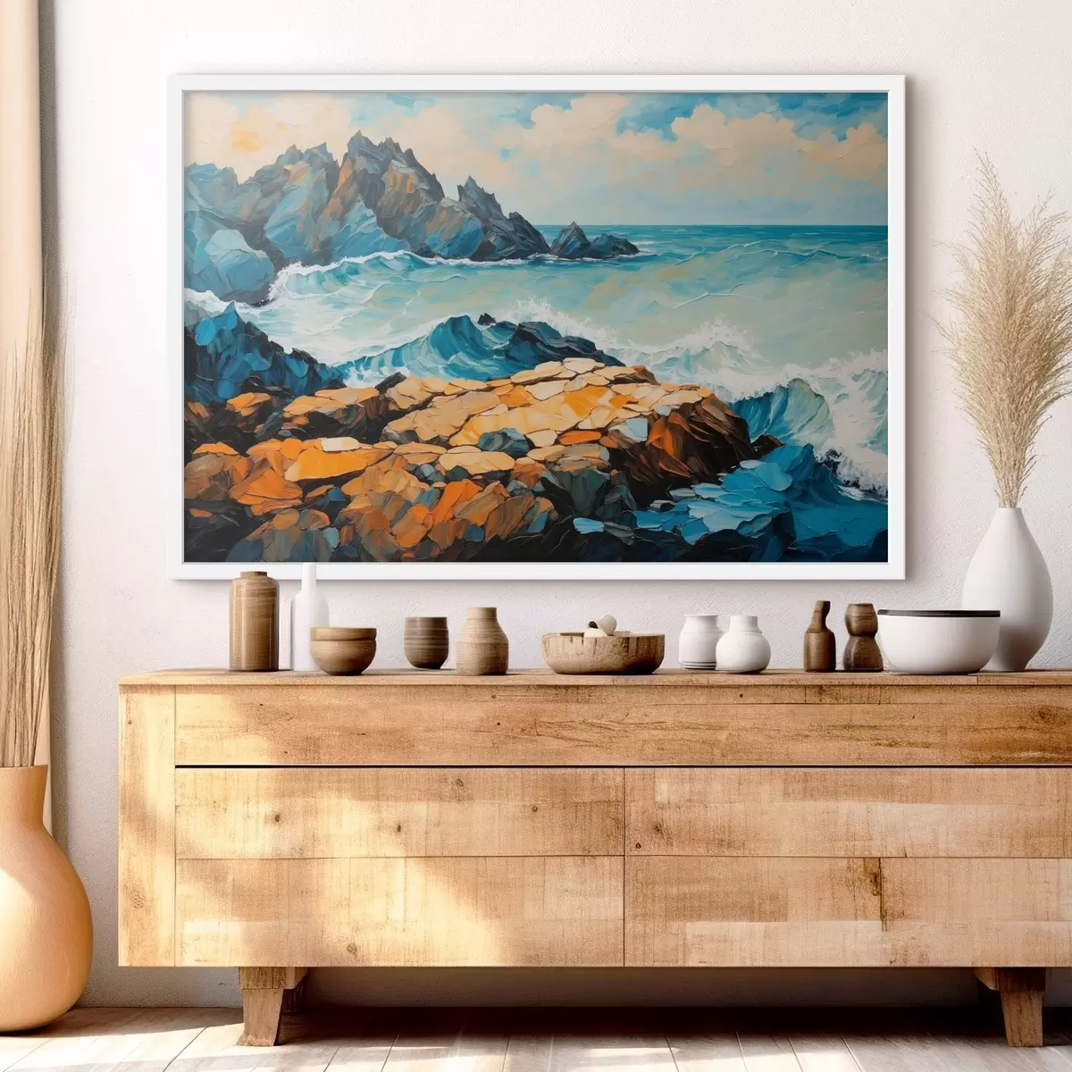Plakatas Bangos, atsitrenkiančios į uolas Ne f43458