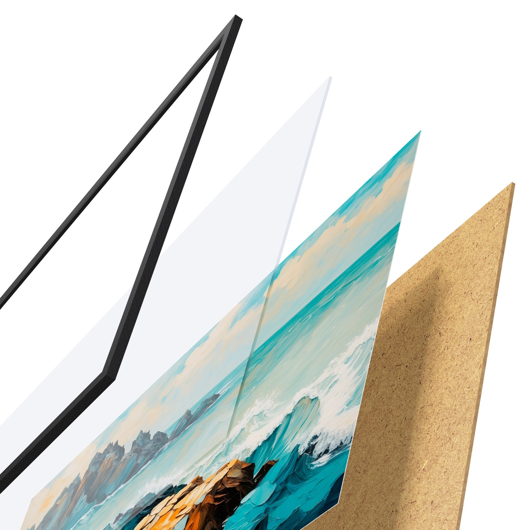 Plakatą sudaro rėmas, pleksiklas, atspausdintas vaizdas ir medžio drožlių plokštės pagrindas. Plakatą galima iš karto pakabinti ant sienos dėl kitoje pusėje esančių laikiklių.