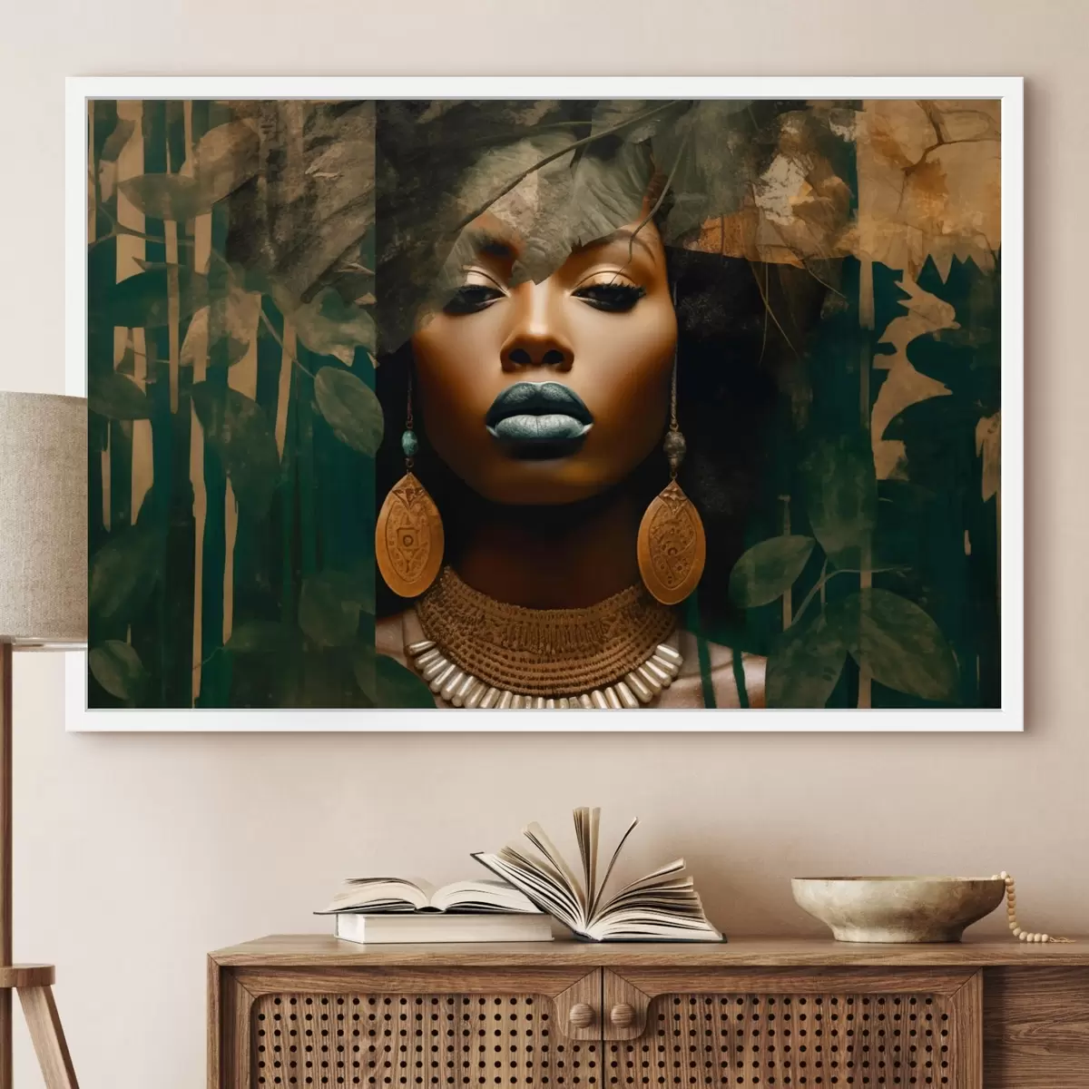 Plakatas Mergaitės veidas abstrakčiame miško fone Ne f43466