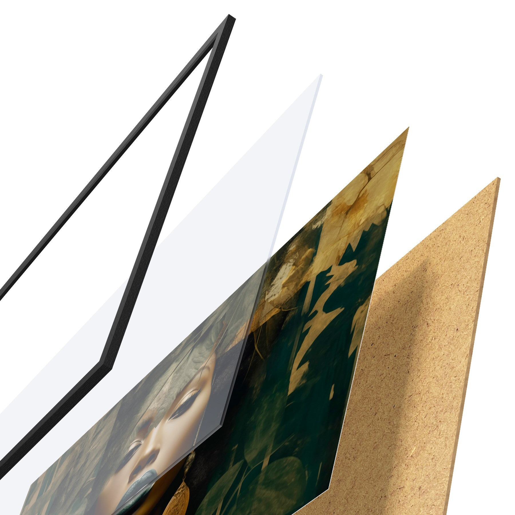 Plakatą sudaro rėmas, pleksiklas, atspausdintas vaizdas ir medžio drožlių plokštės pagrindas. Plakatą galima iš karto pakabinti ant sienos dėl kitoje pusėje esančių laikiklių.