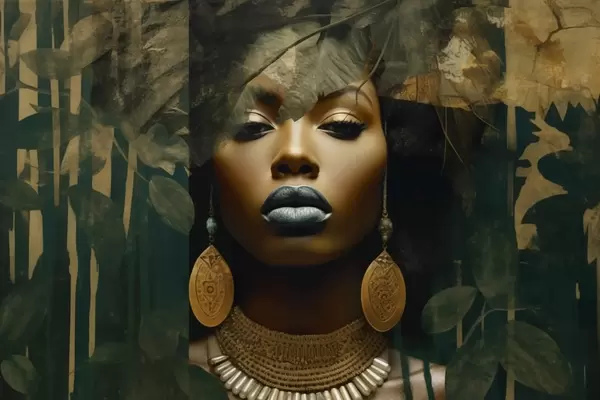 Plakatas Mergaitės veidas abstrakčiame miško fone Ne f43466