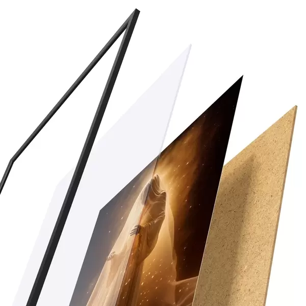 Plakatą sudaro rėmas, pleksiklas, atspausdintas vaizdas ir medžio drožlių plokštės pagrindas. Plakatą galima iš karto pakabinti ant sienos dėl kitoje pusėje esančių laikiklių.