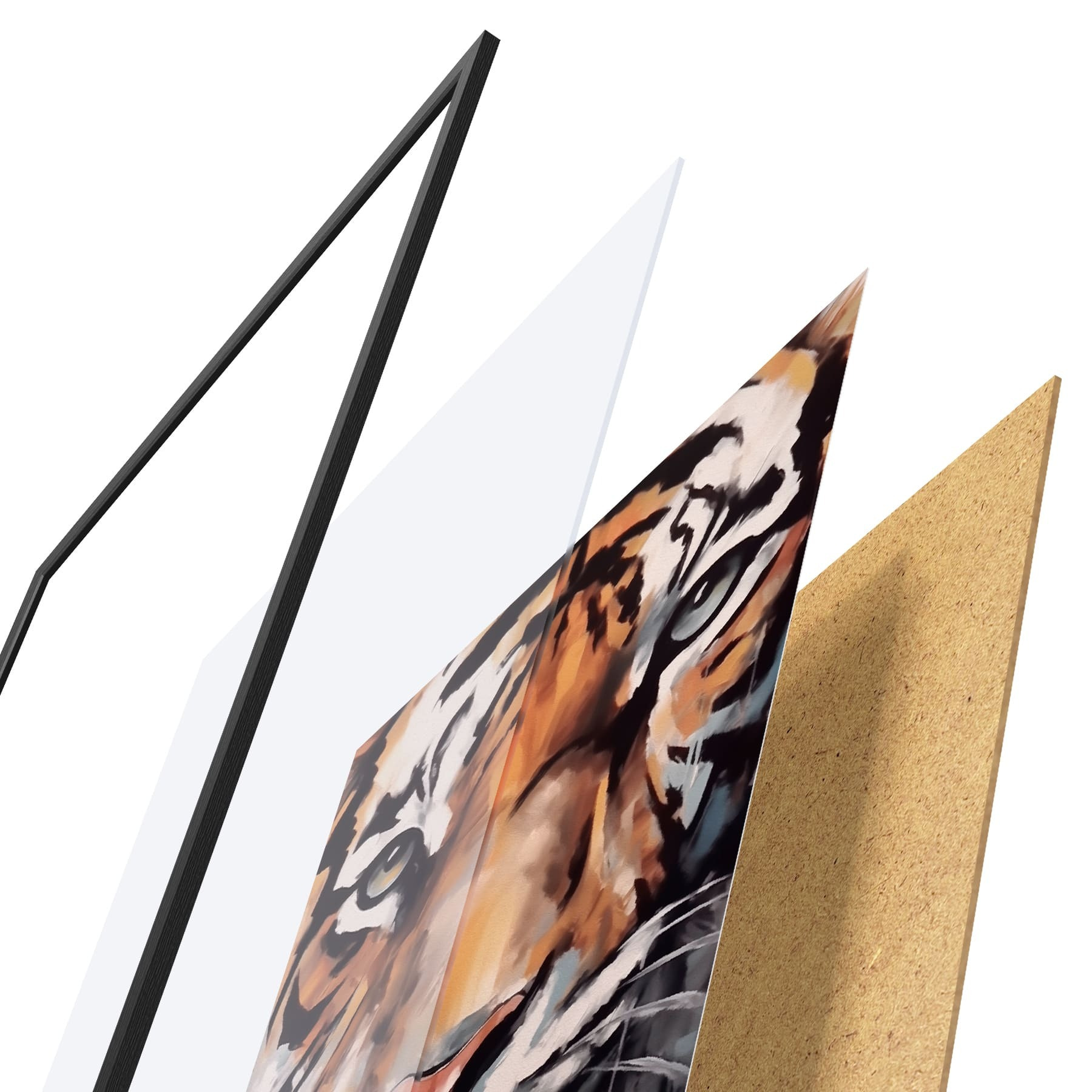 Plakatą sudaro rėmas, pleksiklas, atspausdintas vaizdas ir medžio drožlių plokštės pagrindas. Plakatą galima iš karto pakabinti ant sienos dėl kitoje pusėje esančių laikiklių.