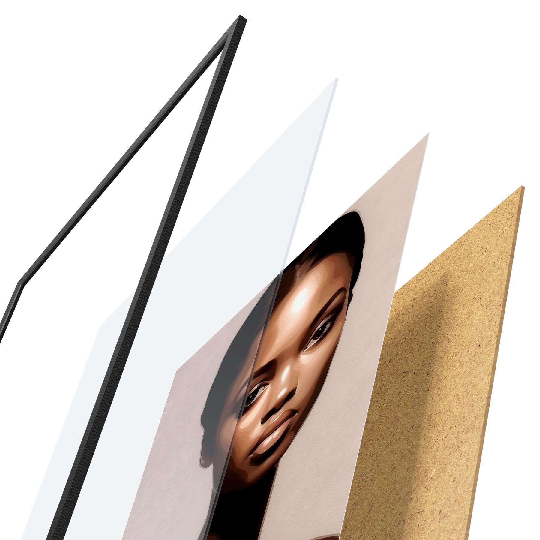 Plakatą sudaro rėmas, pleksiklas, atspausdintas vaizdas ir medžio drožlių plokštės pagrindas. Plakatą galima iš karto pakabinti ant sienos dėl kitoje pusėje esančių laikiklių.
