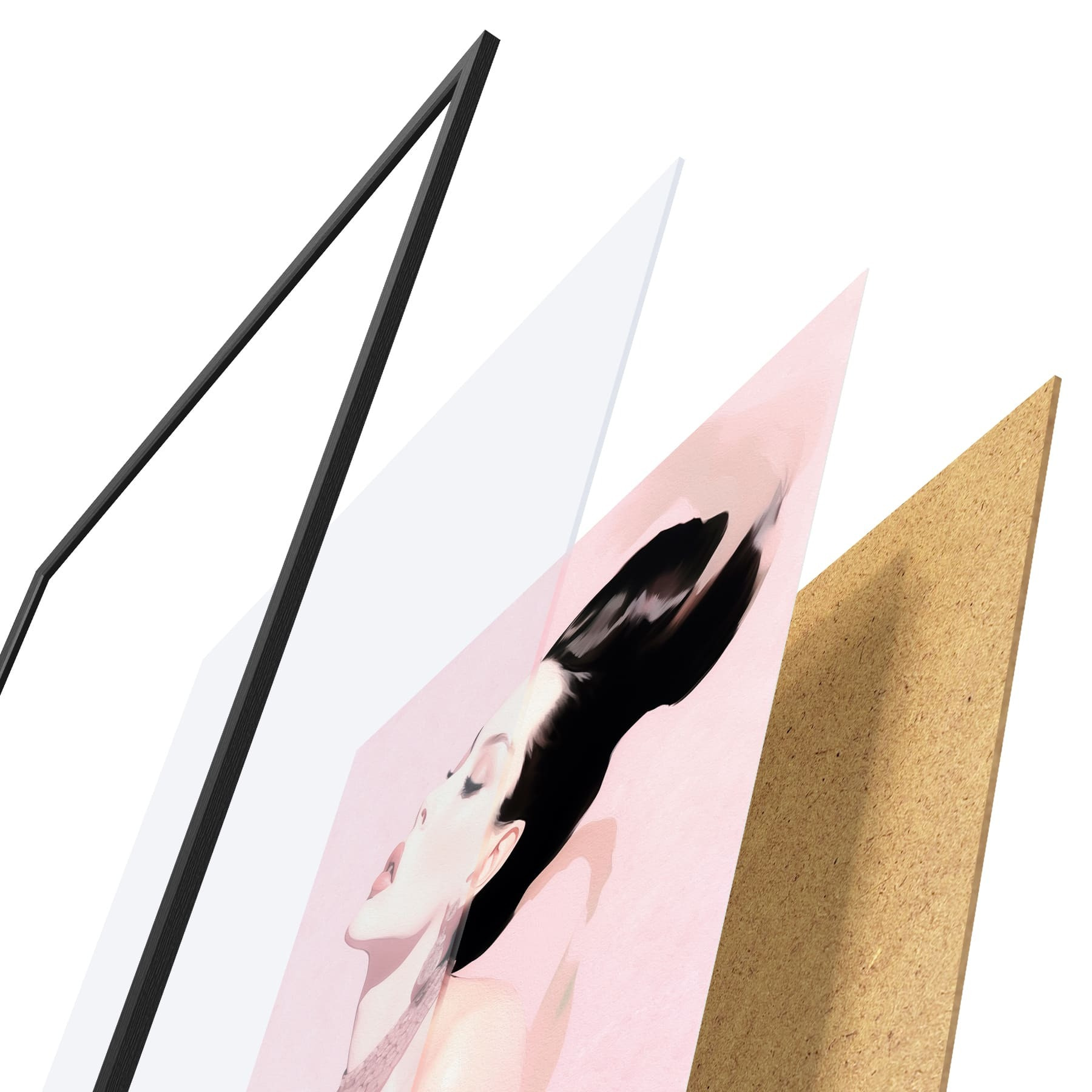 Plakatą sudaro rėmas, pleksiklas, atspausdintas vaizdas ir medžio drožlių plokštės pagrindas. Plakatą galima iš karto pakabinti ant sienos dėl kitoje pusėje esančių laikiklių.