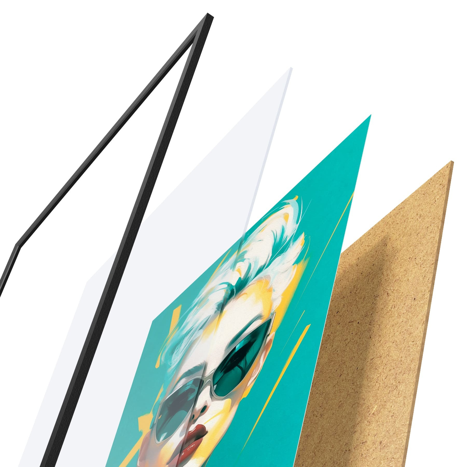 Plakatą sudaro rėmas, pleksiklas, atspausdintas vaizdas ir medžio drožlių plokštės pagrindas. Plakatą galima iš karto pakabinti ant sienos dėl kitoje pusėje esančių laikiklių.