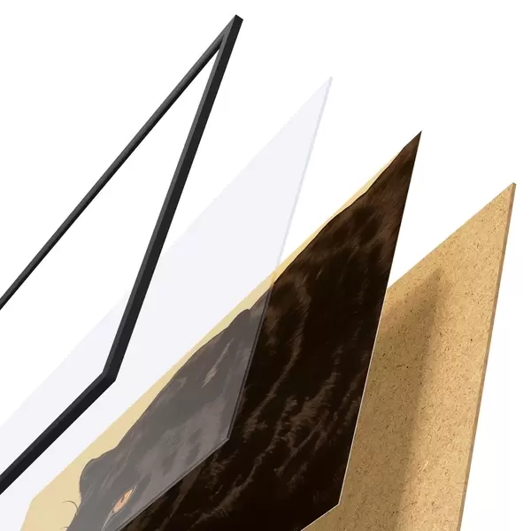 Plakatą sudaro rėmas, pleksiklas, atspausdintas vaizdas ir medžio drožlių plokštės pagrindas. Plakatą galima iš karto pakabinti ant sienos dėl kitoje pusėje esančių laikiklių.