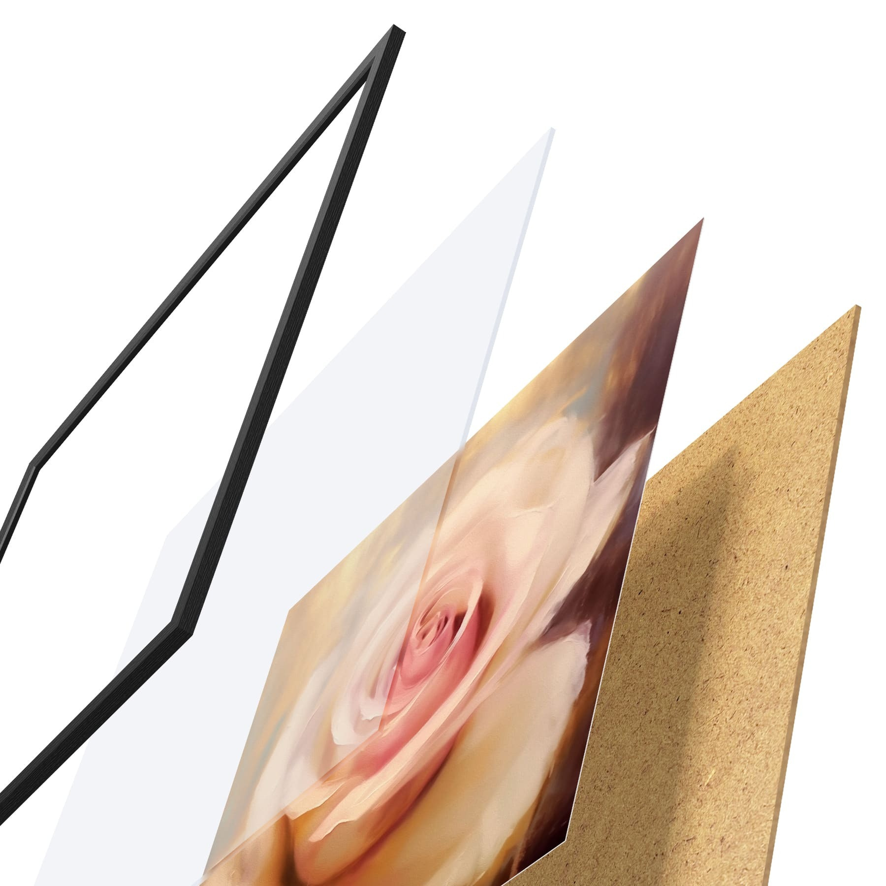 Plakatą sudaro rėmas, pleksiklas, atspausdintas vaizdas ir medžio drožlių plokštės pagrindas. Plakatą galima iš karto pakabinti ant sienos dėl kitoje pusėje esančių laikiklių.