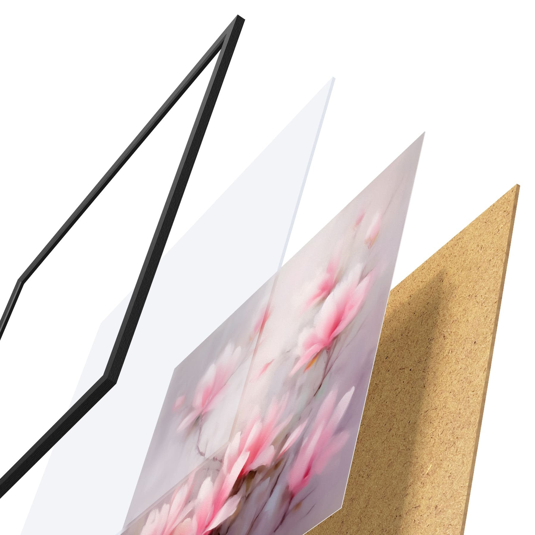Plakatą sudaro rėmas, pleksiklas, atspausdintas vaizdas ir medžio drožlių plokštės pagrindas. Plakatą galima iš karto pakabinti ant sienos dėl kitoje pusėje esančių laikiklių.