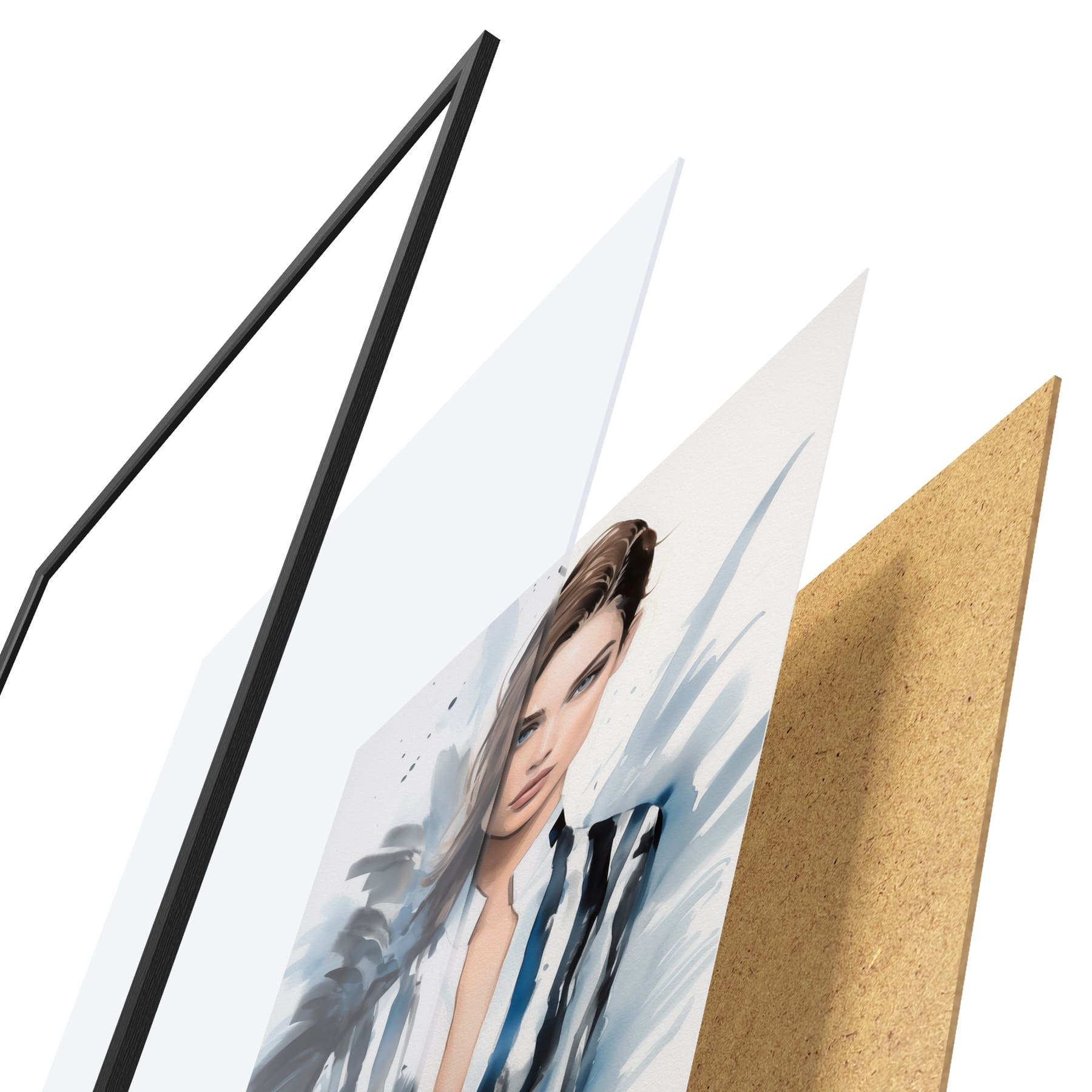 Plakatą sudaro rėmas, pleksiklas, atspausdintas vaizdas ir medžio drožlių plokštės pagrindas. Plakatą galima iš karto pakabinti ant sienos dėl kitoje pusėje esančių laikiklių.