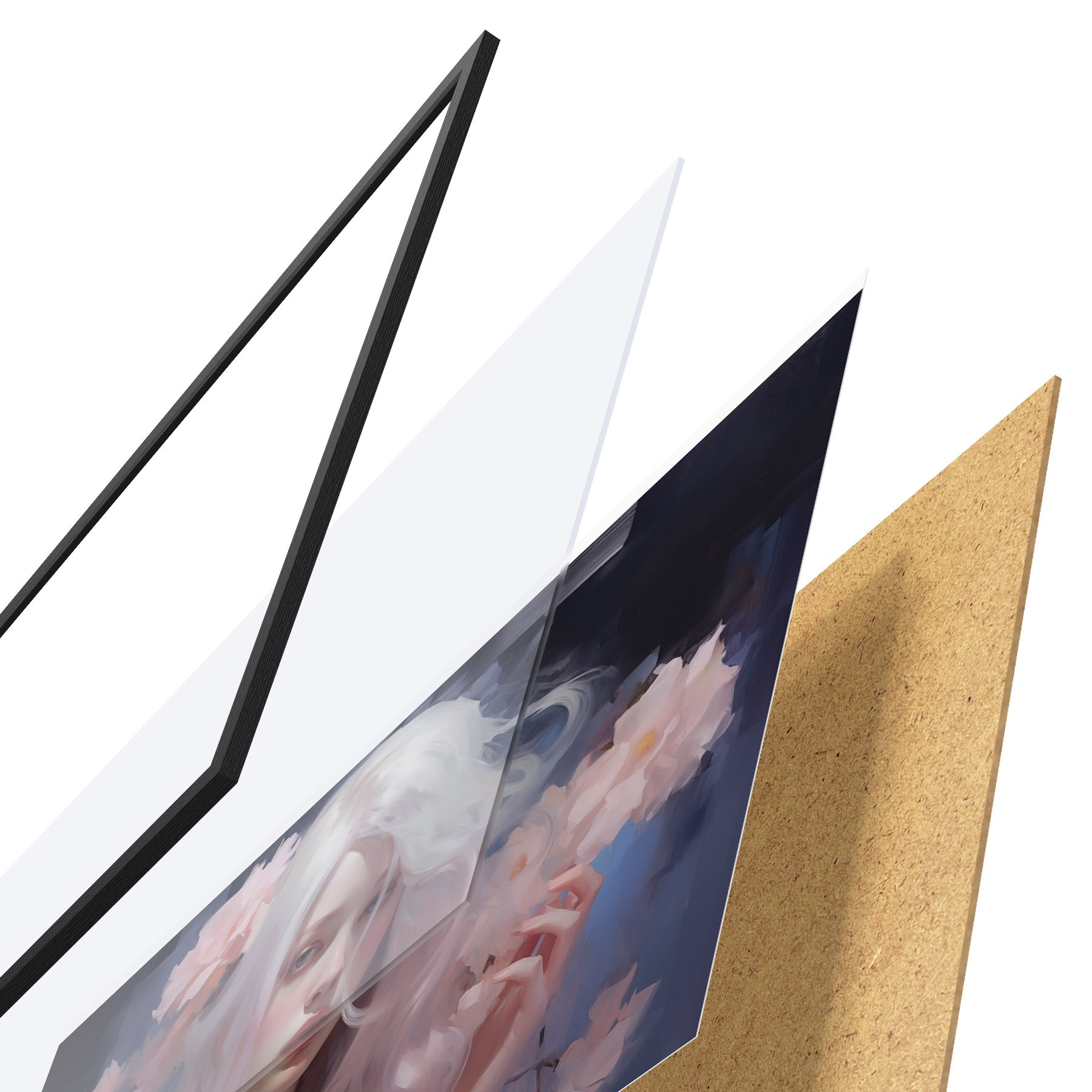 Plakatą sudaro rėmas, pleksiklas, atspausdintas vaizdas ir medžio drožlių plokštės pagrindas. Plakatą galima iš karto pakabinti ant sienos dėl kitoje pusėje esančių laikiklių.