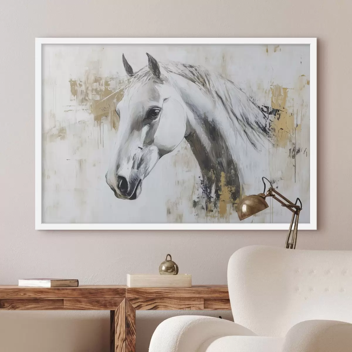 Plakatas Baltas arklys, aliejinis piešinys, gyvūnai, ryškūs teptuko potėpiai Ne f43497