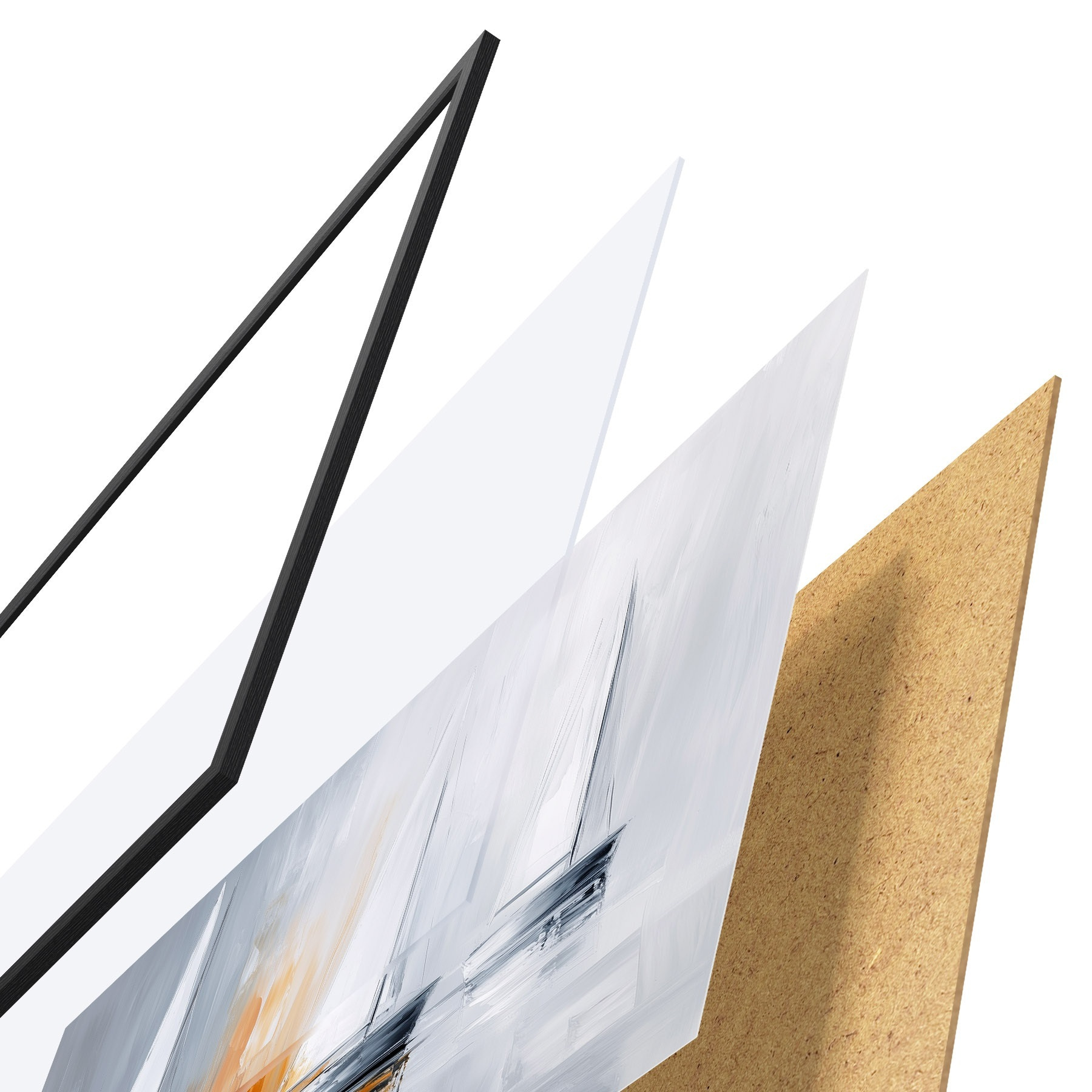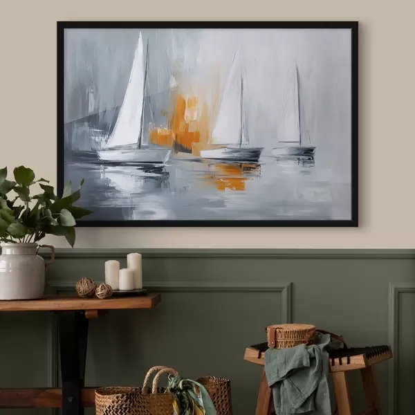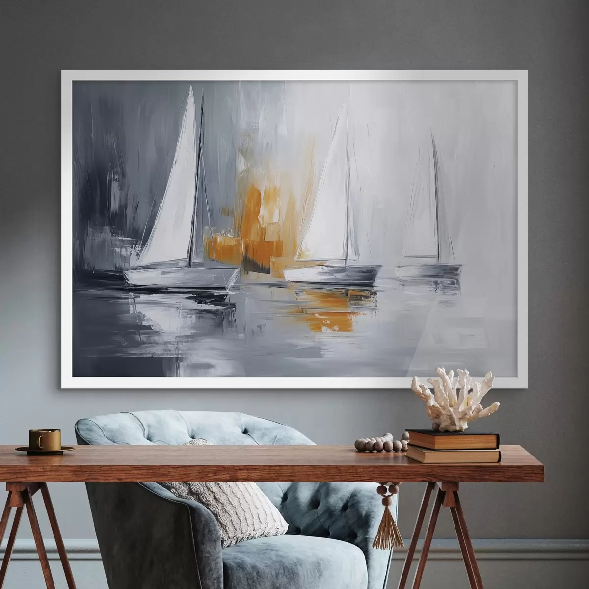 Plakatas Burlaiviai, abstrakcija, akrilo stiliaus piešinys, pilka ir oranžinė spalvos Ne f43499
