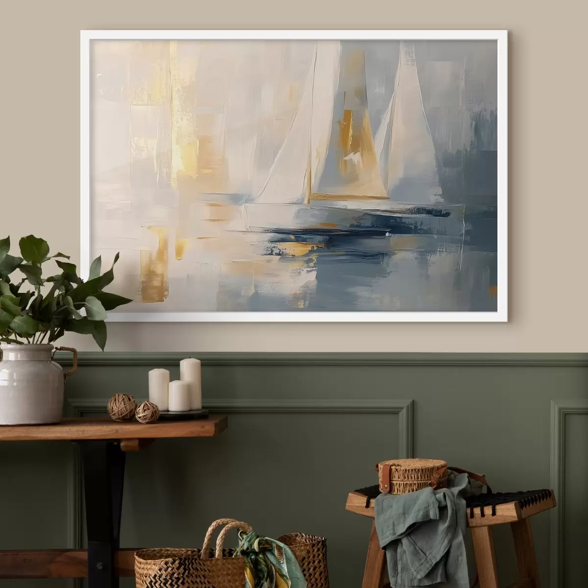 Plakatas Abstrakcija su burlaiviais jūroje, akrilo stilius, saulėlydis f43500