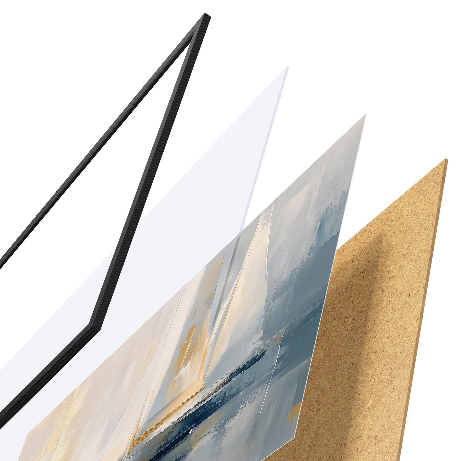 Plakatą sudaro rėmas, pleksiklas, atspausdintas vaizdas ir medžio drožlių plokštės pagrindas. Plakatą galima iš karto pakabinti ant sienos dėl kitoje pusėje esančių laikiklių.