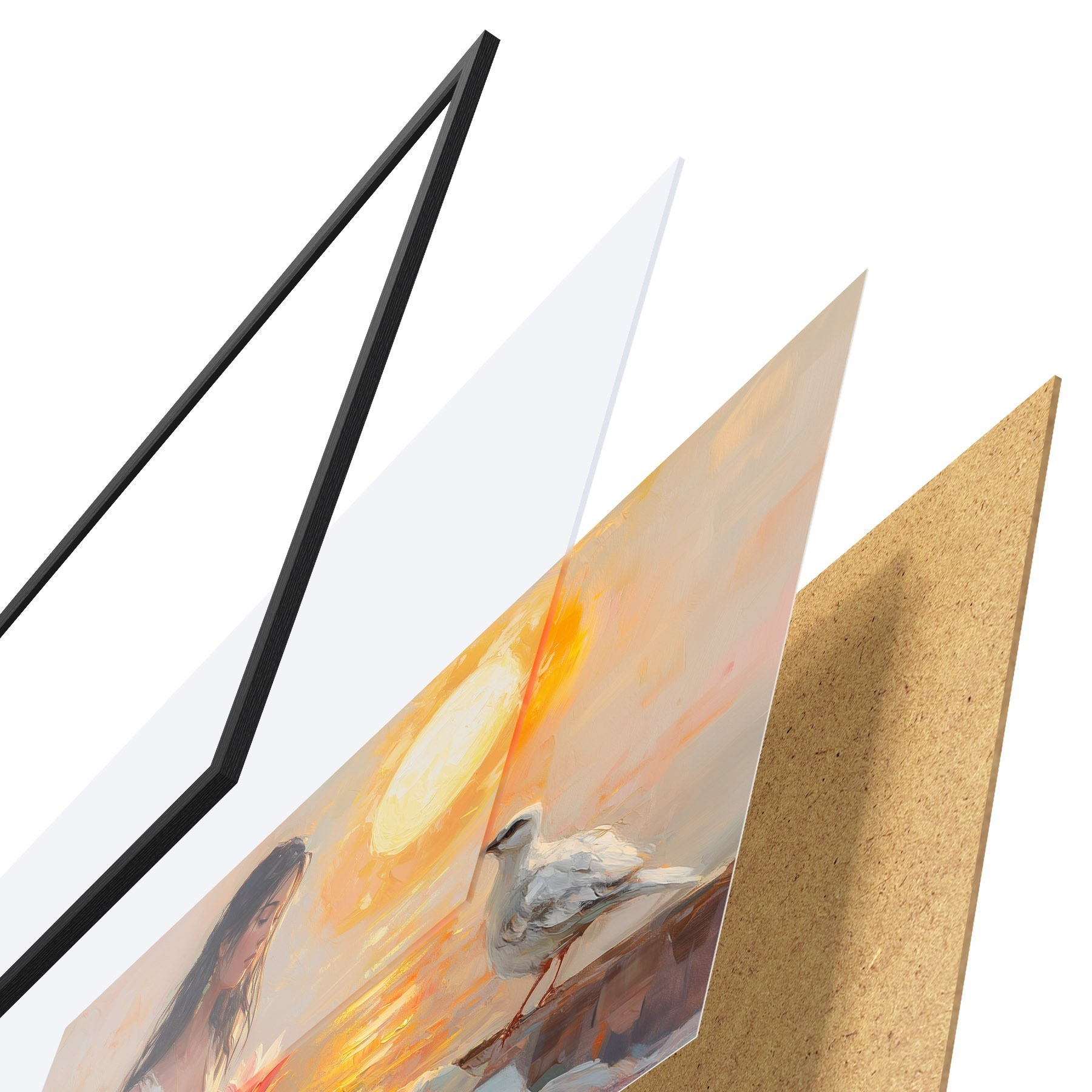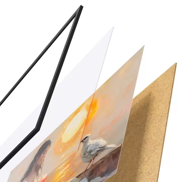 Plakatą sudaro rėmas, pleksiklas, atspausdintas vaizdas ir medžio drožlių plokštės pagrindas. Plakatą galima iš karto pakabinti ant sienos dėl kitoje pusėje esančių laikiklių.