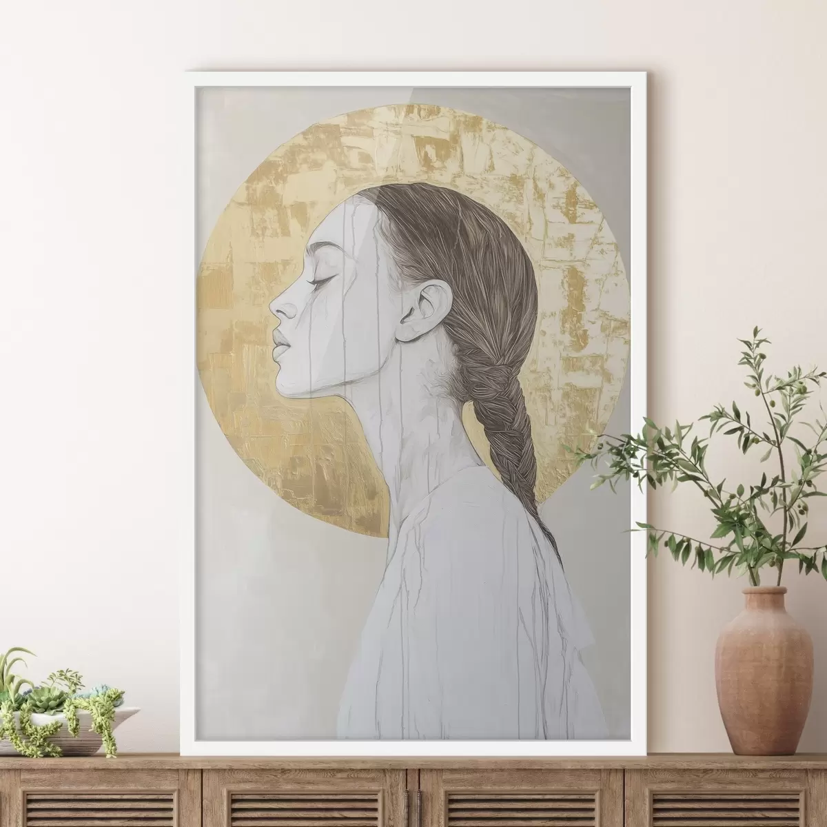 Plakatas Moters portretas, minimalizmas, akrilo stilius, smėlio spalvos Ne f43504