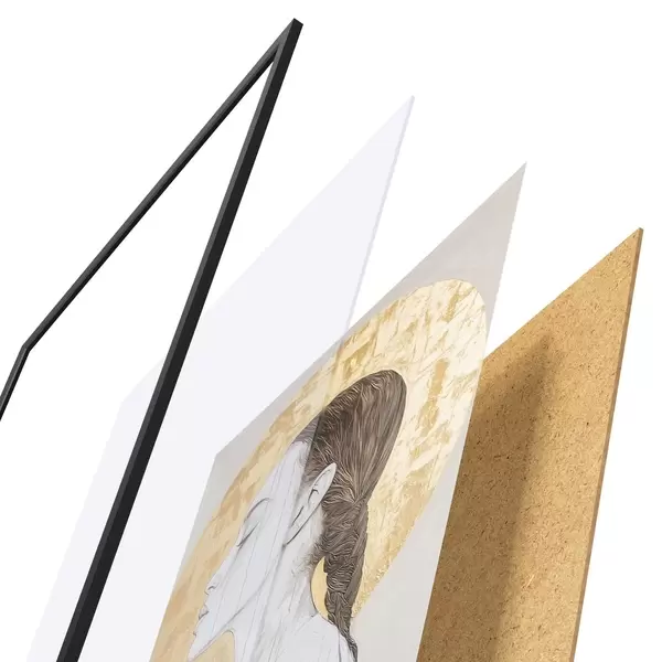 Plakatą sudaro rėmas, pleksiklas, atspausdintas vaizdas ir medžio drožlių plokštės pagrindas. Plakatą galima iš karto pakabinti ant sienos dėl kitoje pusėje esančių laikiklių.