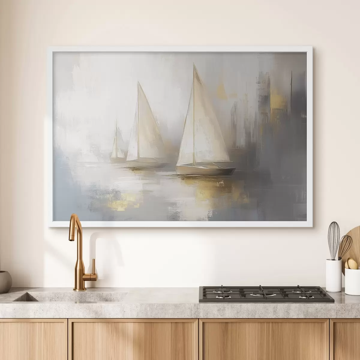 Plakatas Valtys jūroje, abstrakcija, aliejaus stilius, smėlio spalvos Ne f43505
