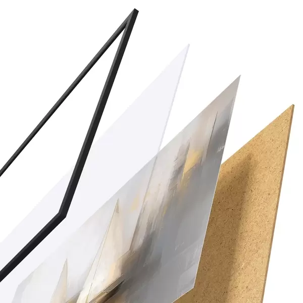 Plakatą sudaro rėmas, pleksiklas, atspausdintas vaizdas ir medžio drožlių plokštės pagrindas. Plakatą galima iš karto pakabinti ant sienos dėl kitoje pusėje esančių laikiklių.