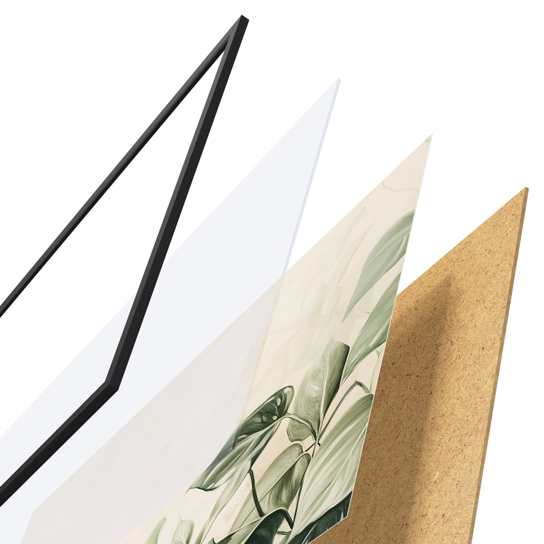 Plakatą sudaro rėmas, pleksiklas, atspausdintas vaizdas ir medžio drožlių plokštės pagrindas. Plakatą galima iš karto pakabinti ant sienos dėl kitoje pusėje esančių laikiklių.