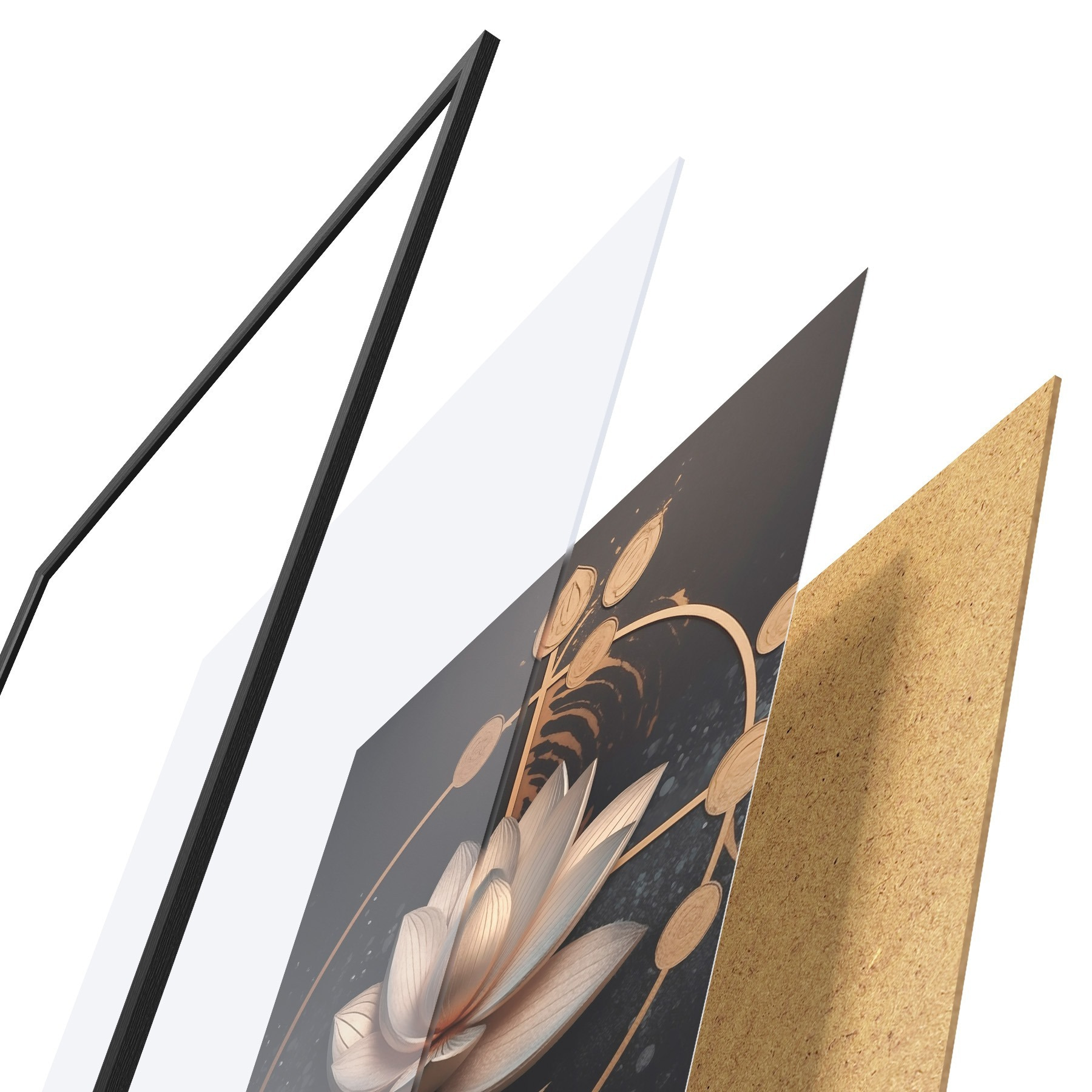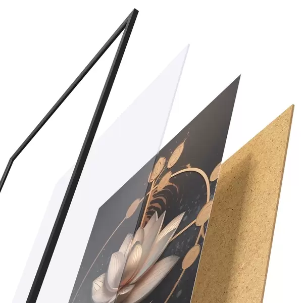 Plakatą sudaro rėmas, pleksiklas, atspausdintas vaizdas ir medžio drožlių plokštės pagrindas. Plakatą galima iš karto pakabinti ant sienos dėl kitoje pusėje esančių laikiklių.