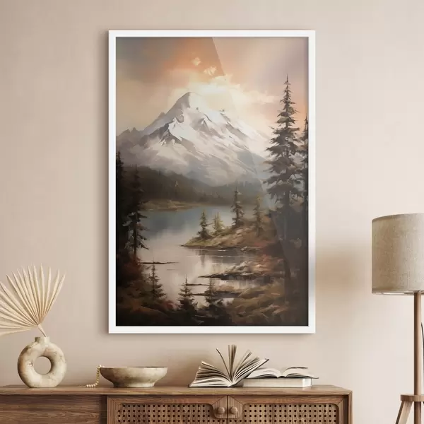 Plakatas Gamtos vaizdas į kalnus, upę f43543
