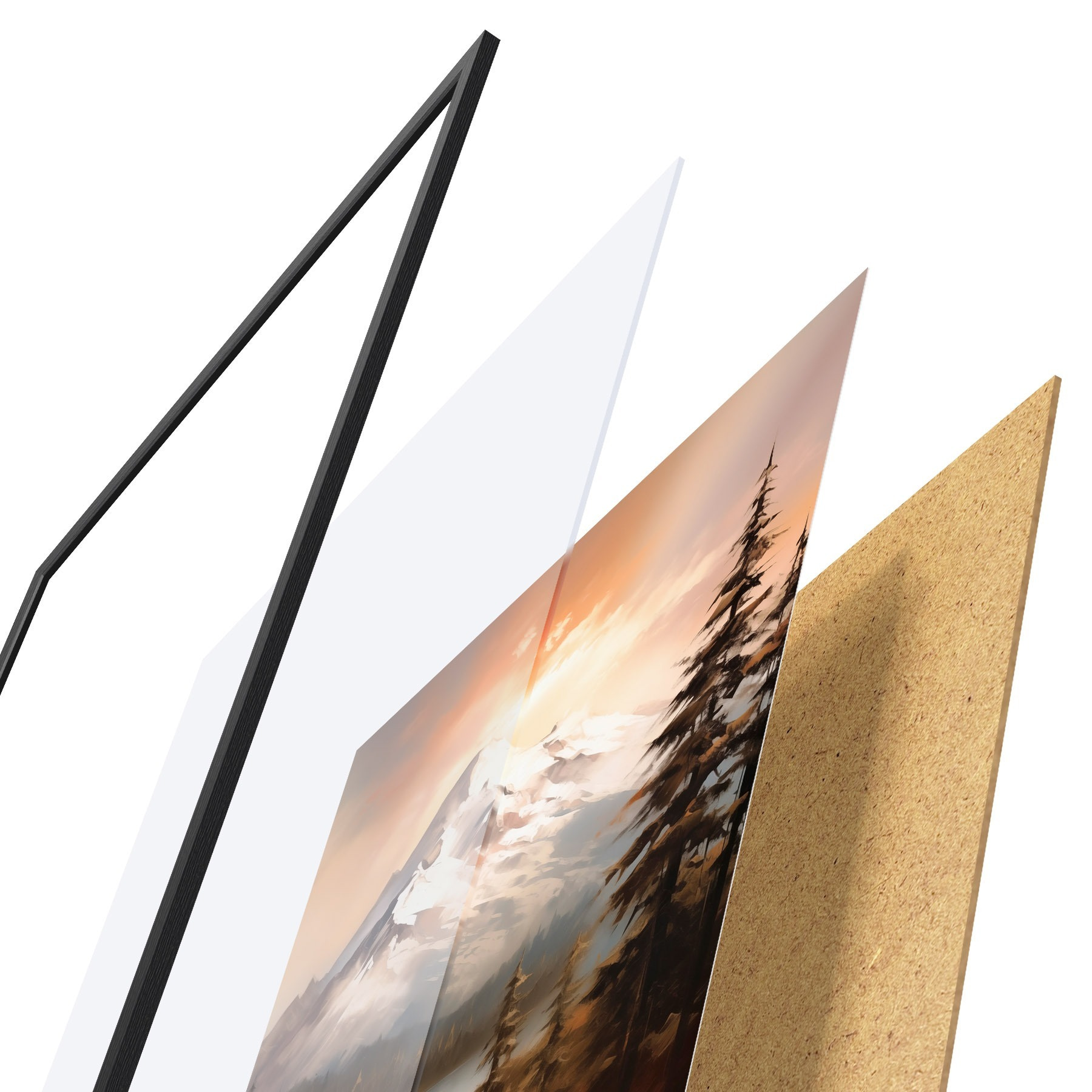 Plakatą sudaro rėmas, pleksiklas, atspausdintas vaizdas ir medžio drožlių plokštės pagrindas. Plakatą galima iš karto pakabinti ant sienos dėl kitoje pusėje esančių laikiklių.