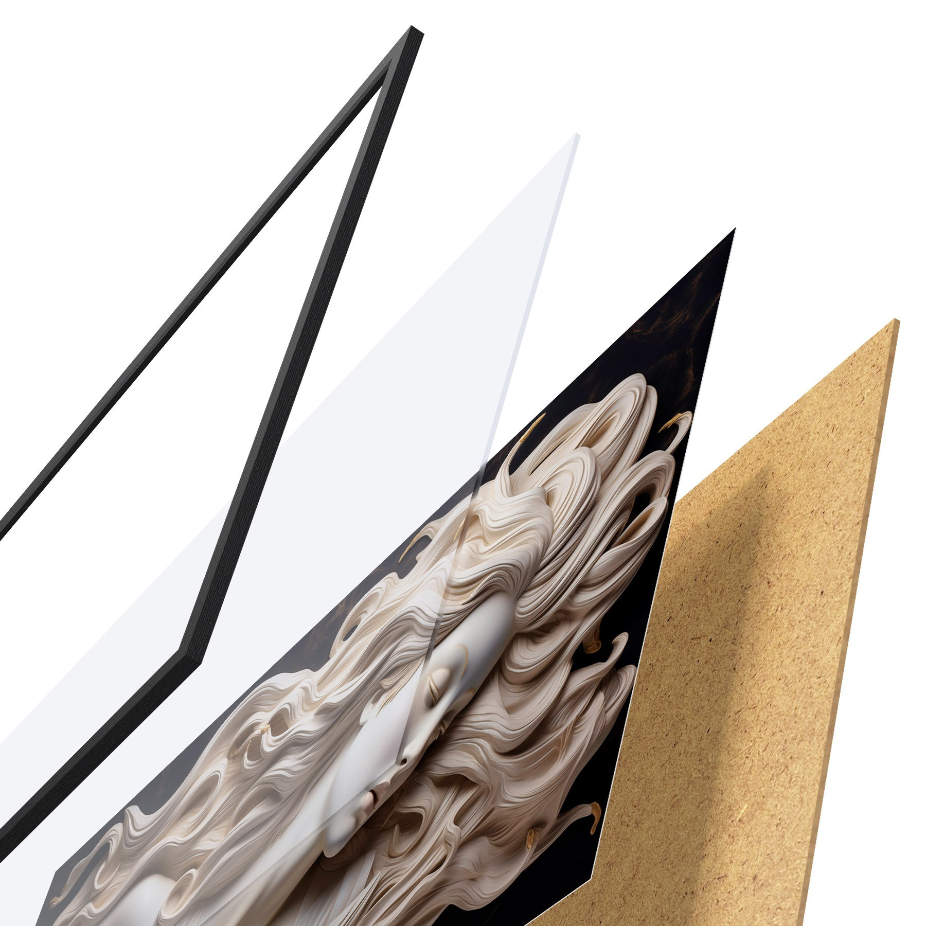 Plakatą sudaro rėmas, pleksiklas, atspausdintas vaizdas ir medžio drožlių plokštės pagrindas. Plakatą galima iš karto pakabinti ant sienos dėl kitoje pusėje esančių laikiklių.