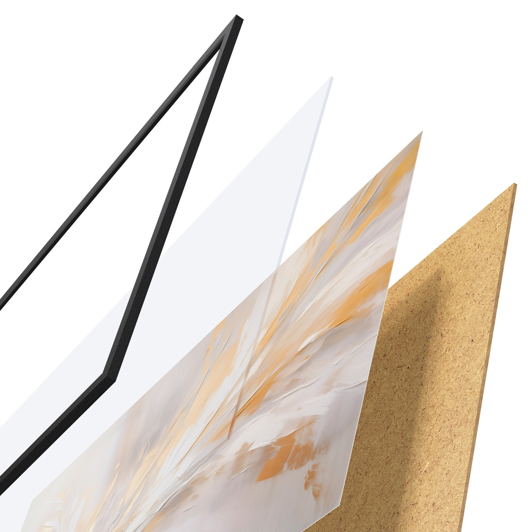 Plakatą sudaro rėmas, pleksiklas, atspausdintas vaizdas ir medžio drožlių plokštės pagrindas. Plakatą galima iš karto pakabinti ant sienos dėl kitoje pusėje esančių laikiklių.