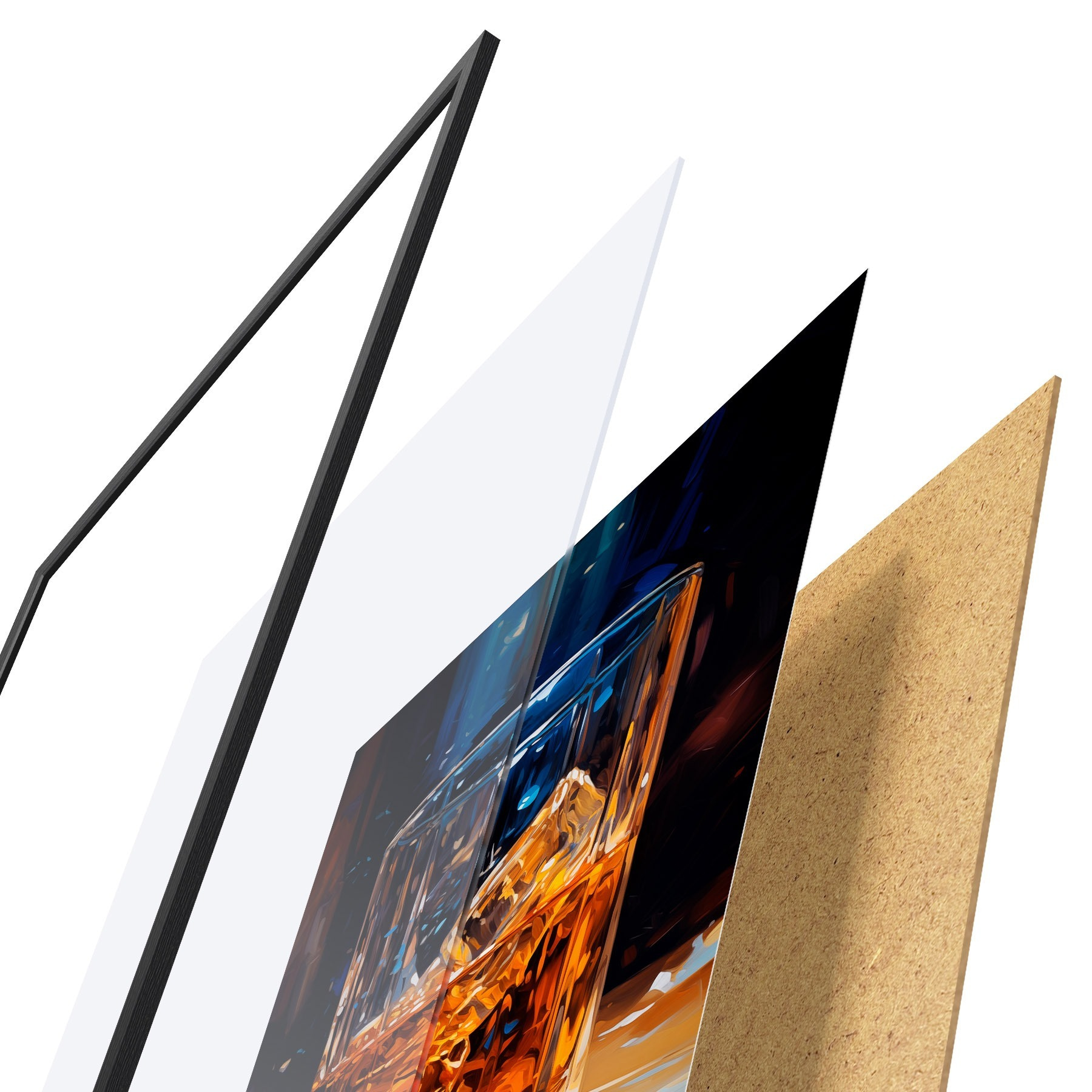 Plakatą sudaro rėmas, pleksiklas, atspausdintas vaizdas ir medžio drožlių plokštės pagrindas. Plakatą galima iš karto pakabinti ant sienos dėl kitoje pusėje esančių laikiklių.
