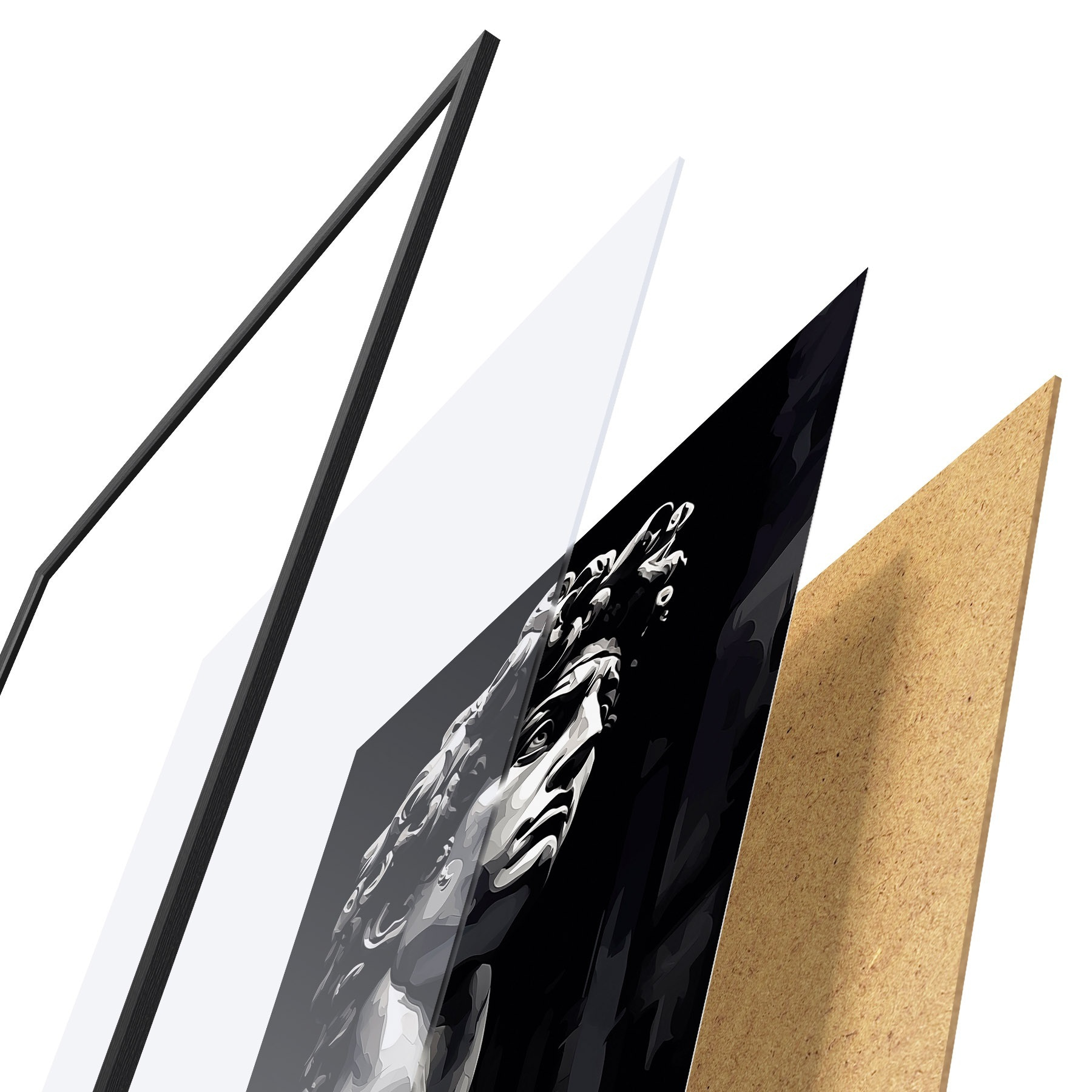 Plakatą sudaro rėmas, pleksiklas, atspausdintas vaizdas ir medžio drožlių plokštės pagrindas. Plakatą galima iš karto pakabinti ant sienos dėl kitoje pusėje esančių laikiklių.